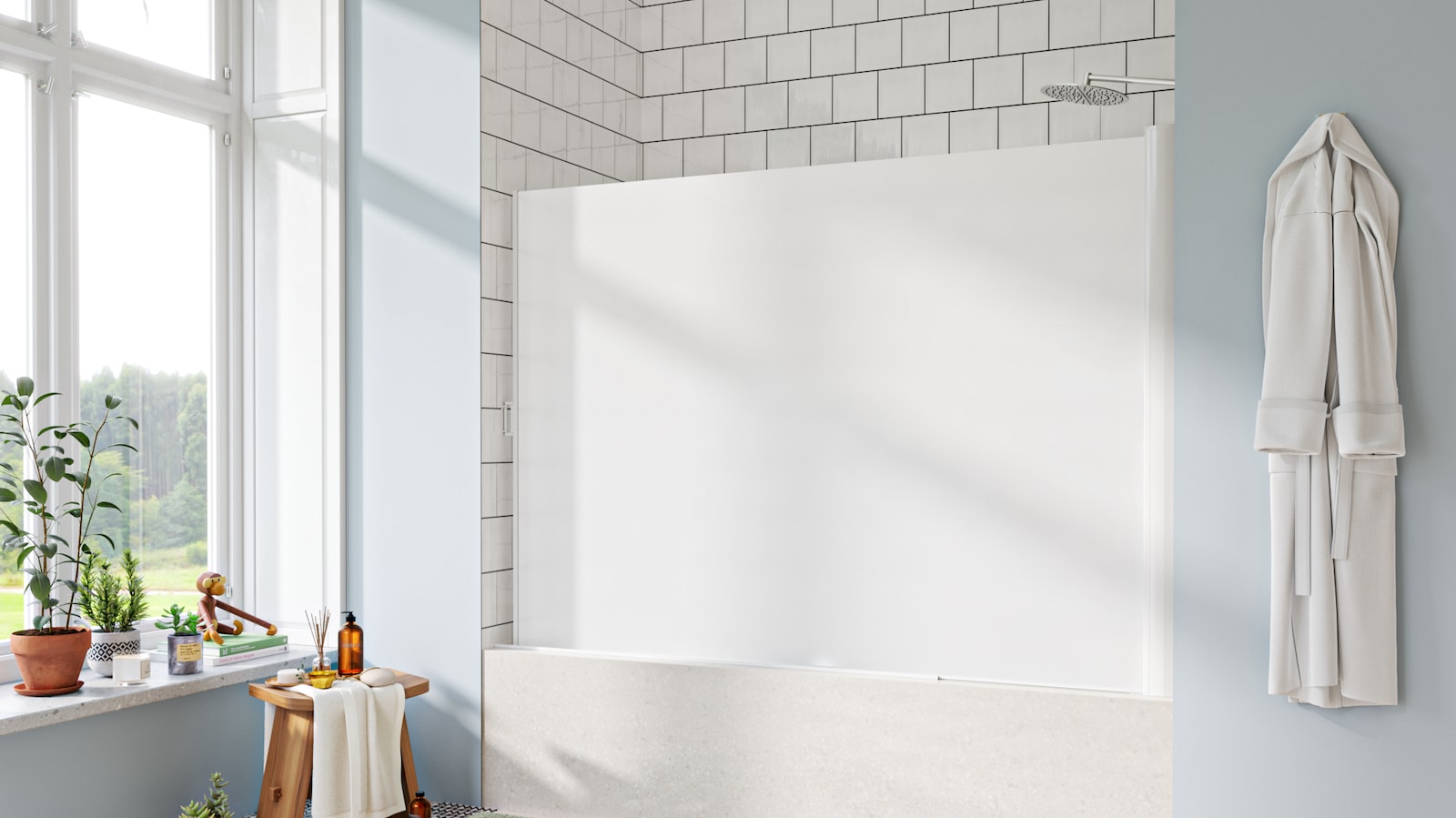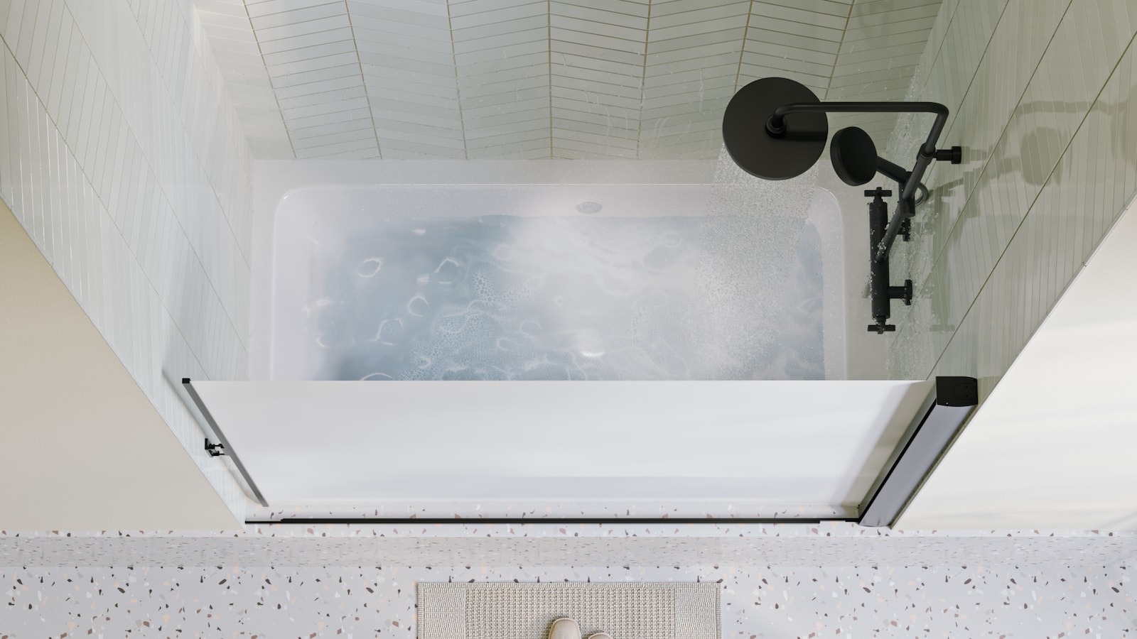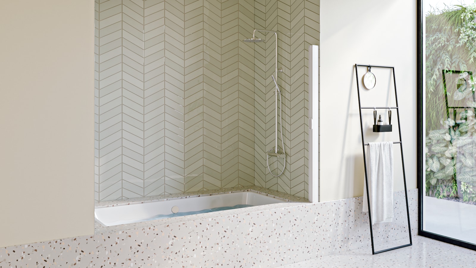 With an easy, drill-free installation process, this retractable rolling shower screen has a pull-out water dam that adjusts in size from 53″ to 78″ and attaches to the rim of the tub.
