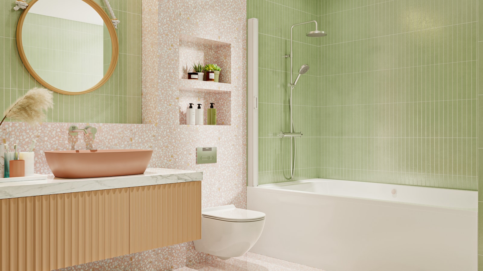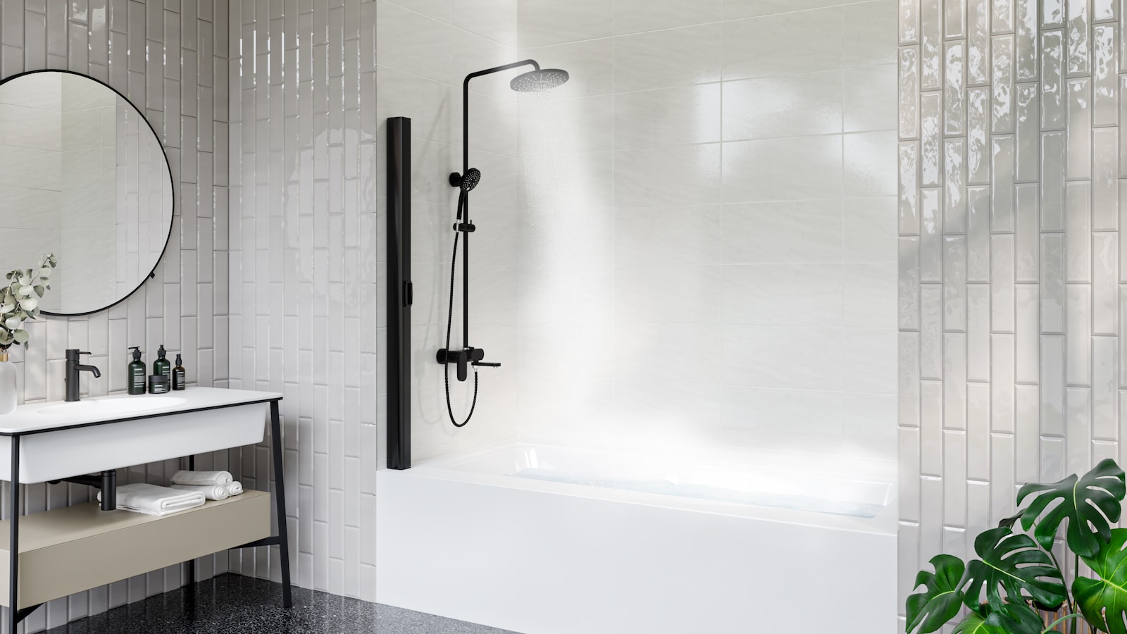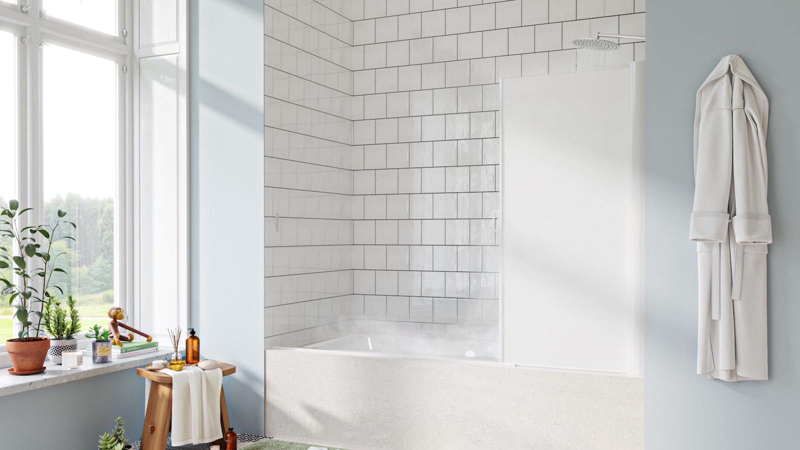 With an easy, drill-free installation process, this retractable rolling shower screen has a pull-out water dam that adjusts in size from 53″ to 78″ and attaches to the rim of the tub.