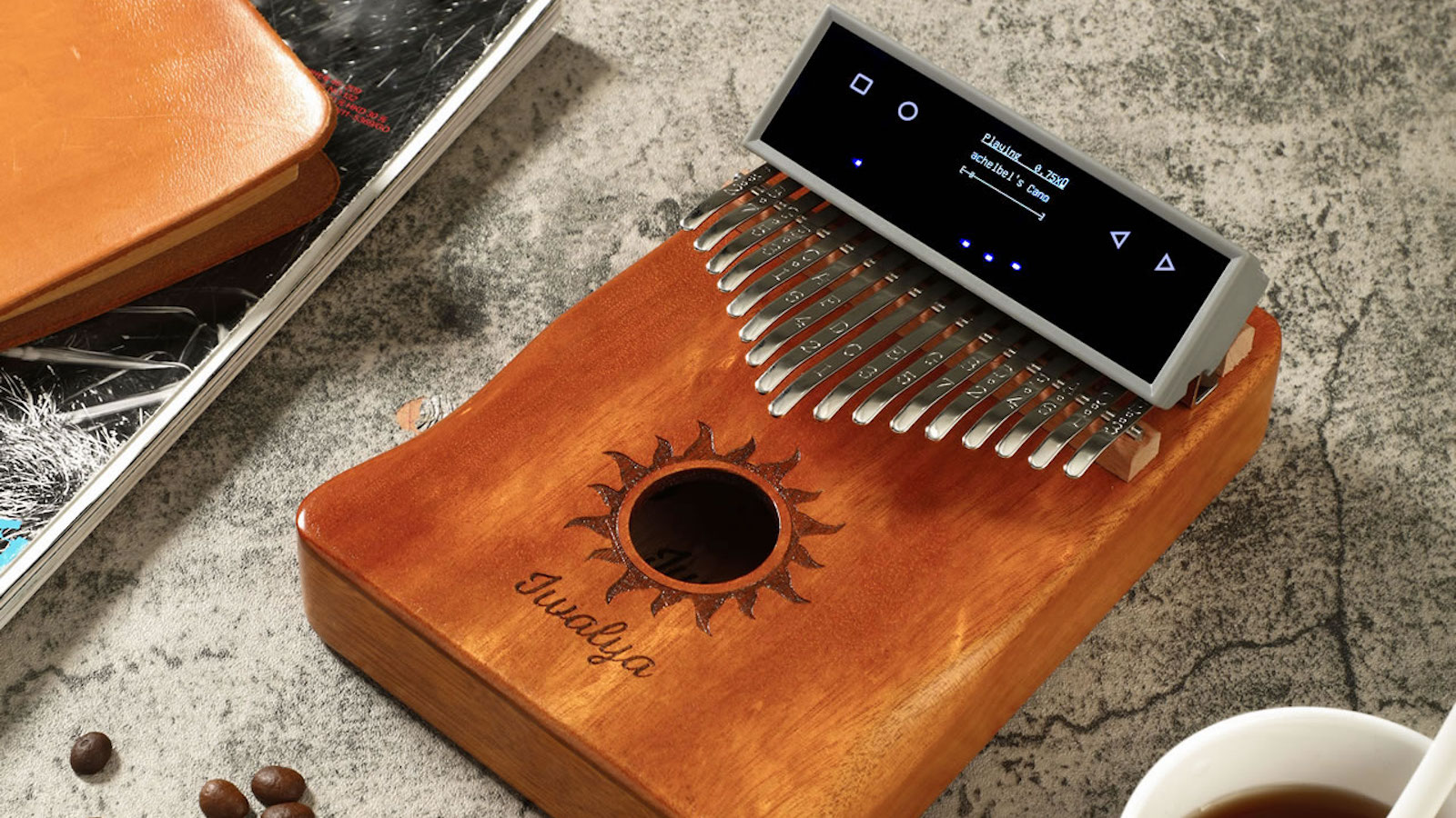 Learn how to play the kalimba, or African piano, with ease using the KalimbaGo thumb piano. This Wi-Fi-connected gadget quickly mounts to many popular 17-tine kalimbas.