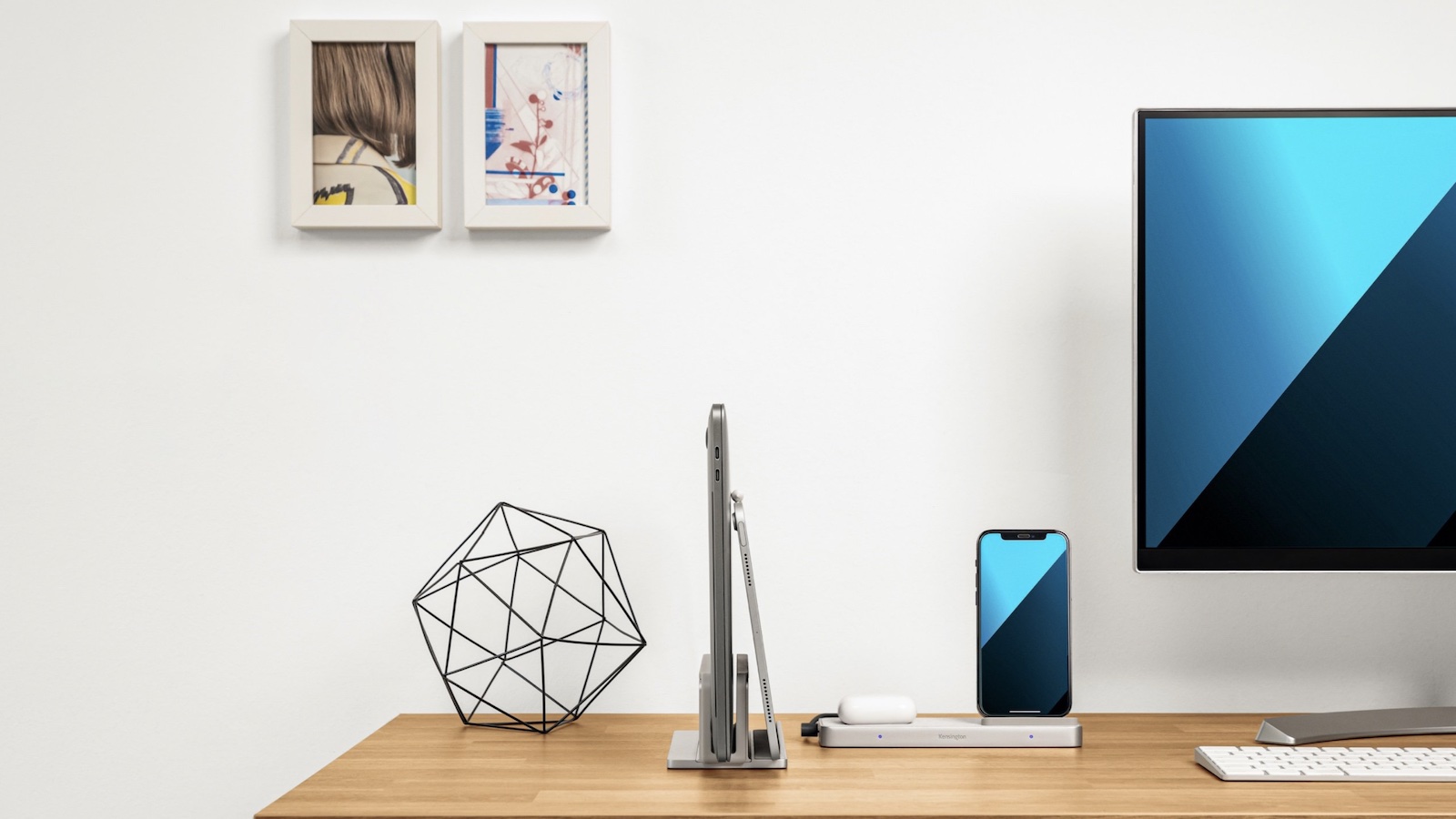 Save space and keep your entire Apple ecosystem organized with the Kensington StudioCaddy Apple device storage system. It has dedicated spots for your MacBook Pro, iPad Pro, iPhone, AirPods, and Apple Watch. And, of course, there’s room for your MacBook Air and regular iPad.