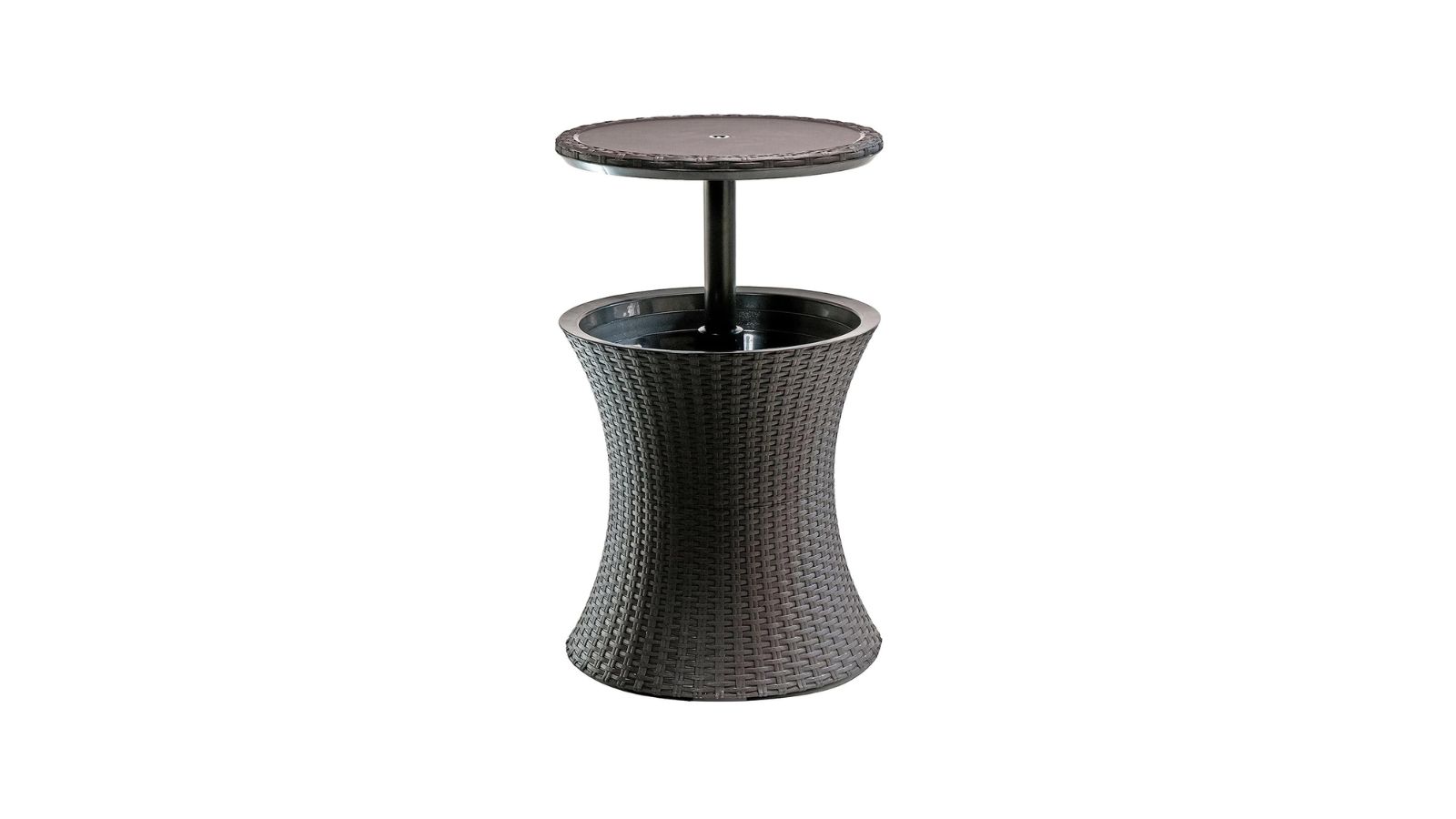 Check out the Keter Pacific Cool Bar outdoor patio furniture. It doubles as both a stylish table and a convenient cooler.