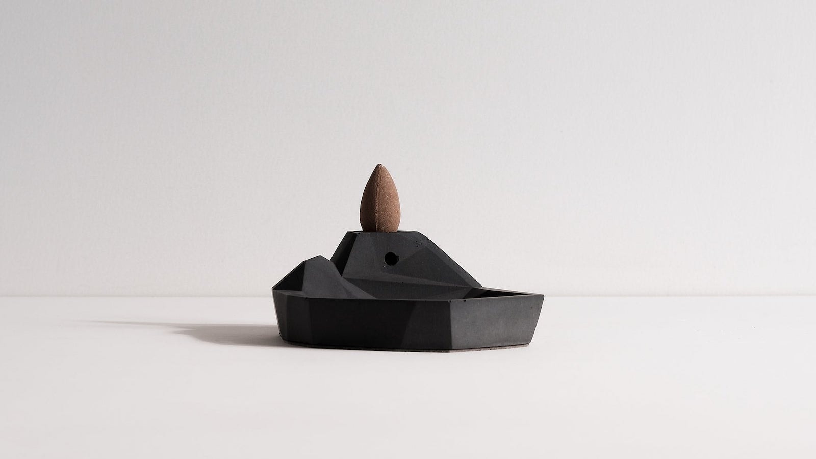 Kin Mountain & Lake Backflow Incense Burner has a modern design made of concrete: Overview