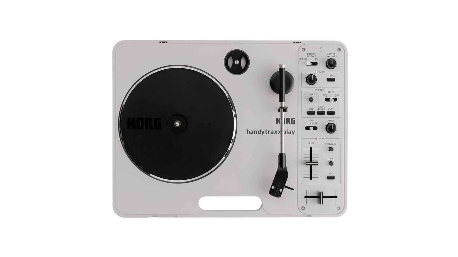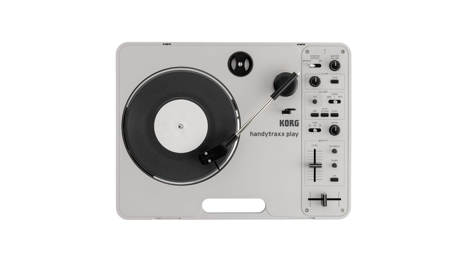 –Legacy Reimagined: Inspired by the iconic Handy Trax, this record player is just as portable. But—it has cutting-edge features like digital effects, a built-in looper, and advanced fader controls.