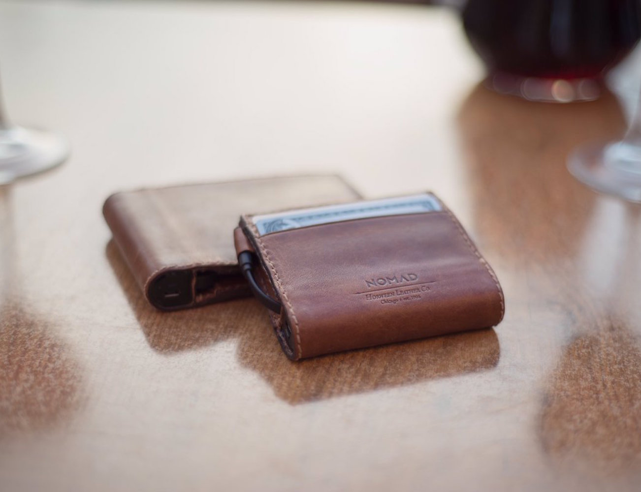 Made with stunning Horween leather, this wallet conceals its own built-in battery pack and has its own integrated Lightning cable for your Apple product.