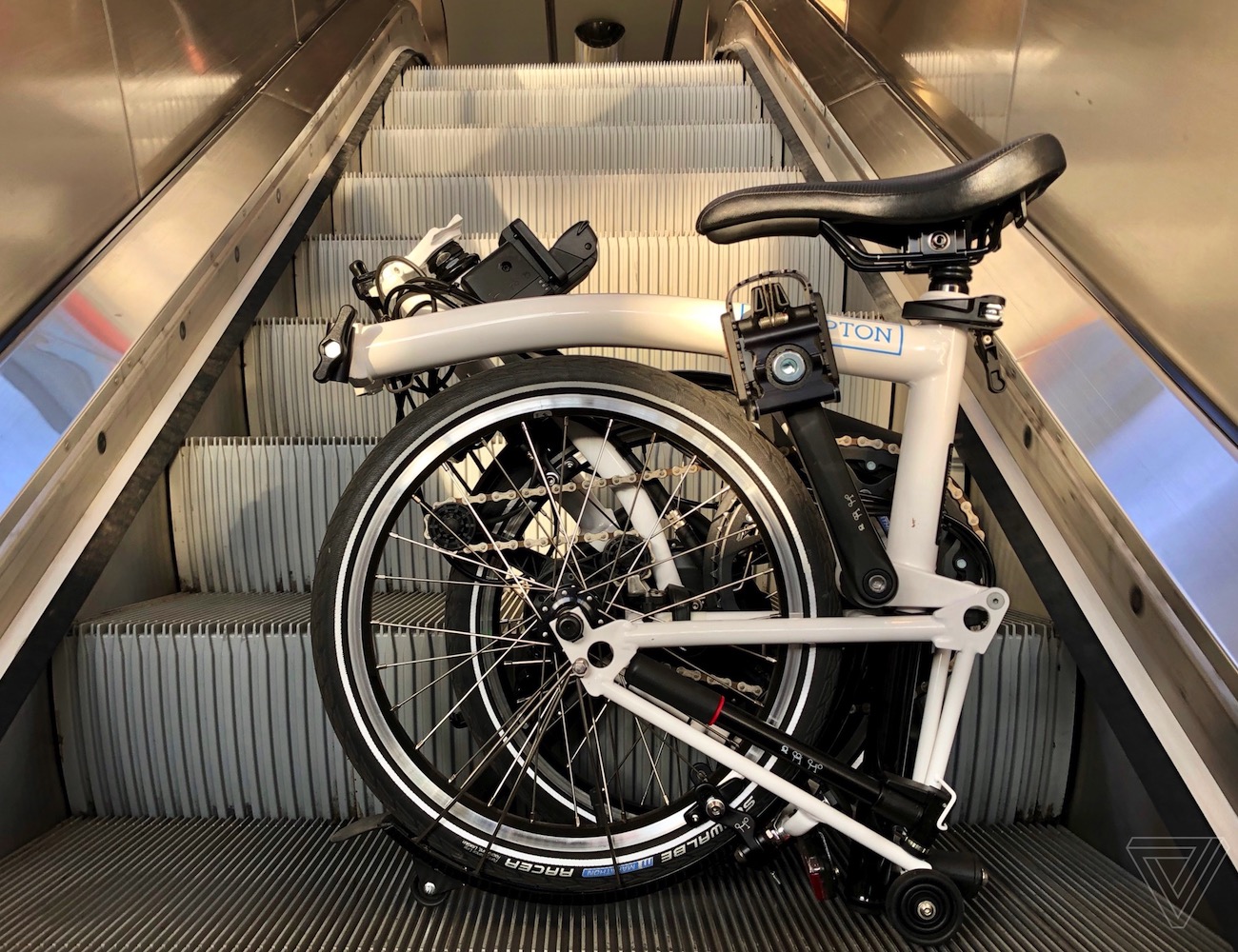 Brompton Electric Lightweight Compact Folding Bike collapses for easy portability: Overview