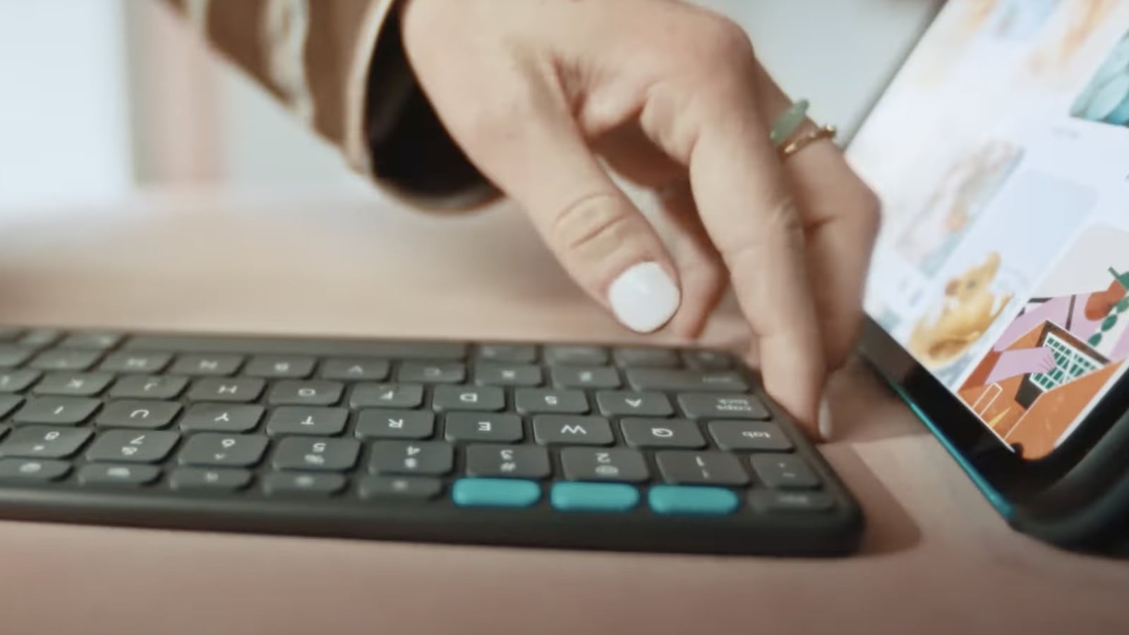 –Pair Multiple Devices: Connect up to three Bluetooth devices and switch between them with a tap using easy-switch keys.