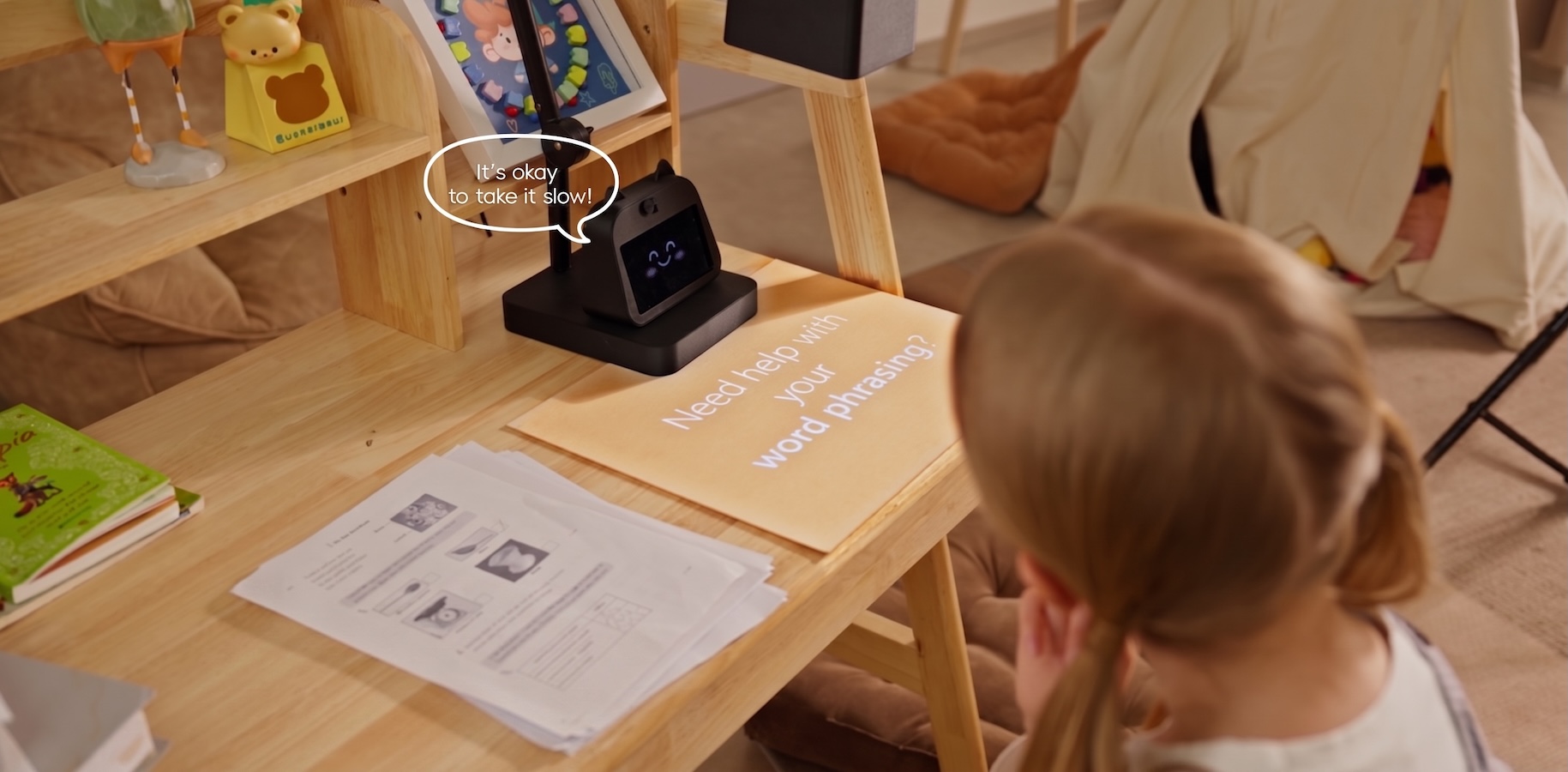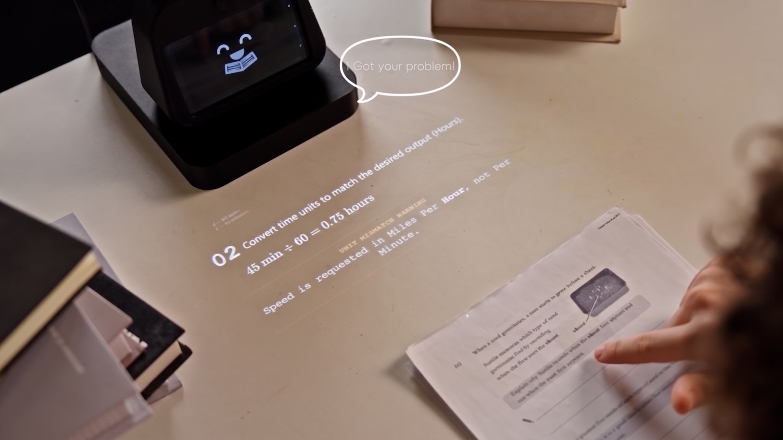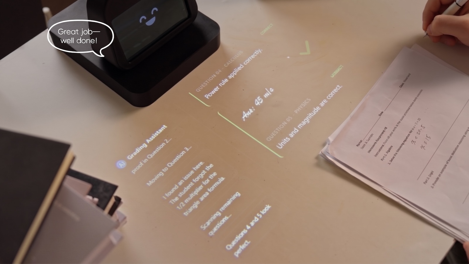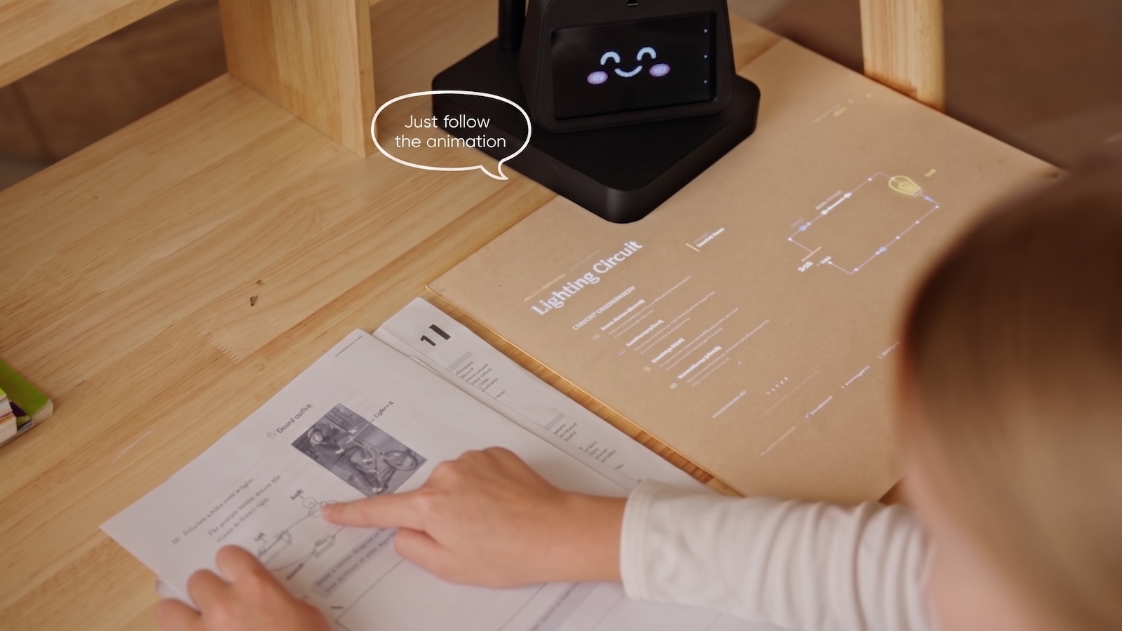 - Animated Projected Explanations: The built-in projector displays moving, AI-generated visuals directly onto the desk surface, making abstract concepts easier to follow and reducing reliance on a traditional screen.