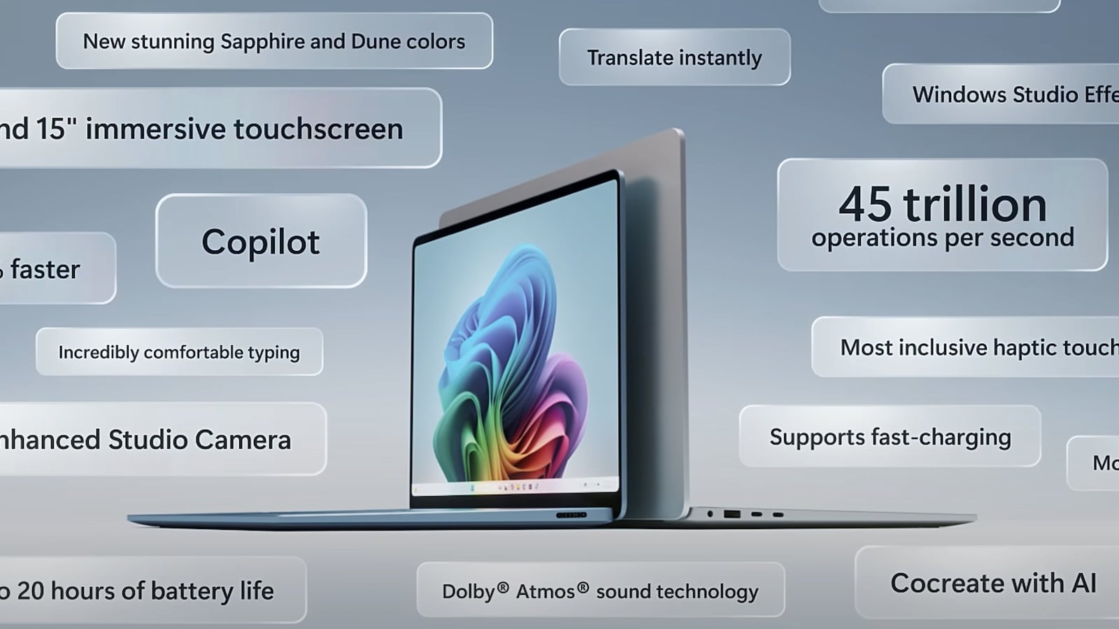 –Next-generation performance: The Surface Laptop can perform 45 trillion operations per second. It’s all thanks to the advanced AI acceleration.