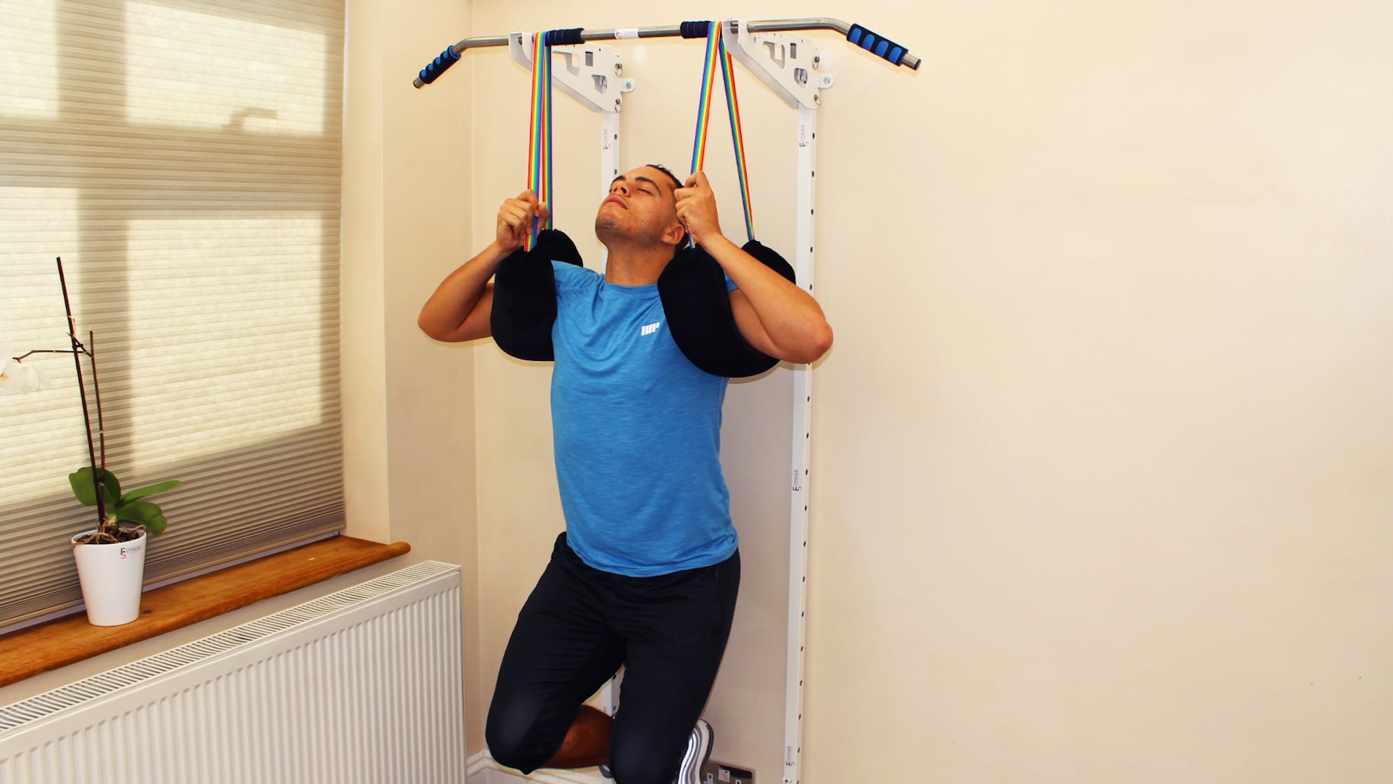 The great part about this indoor Fitness Station is that it works in tight spaces like hallways and behind doors.