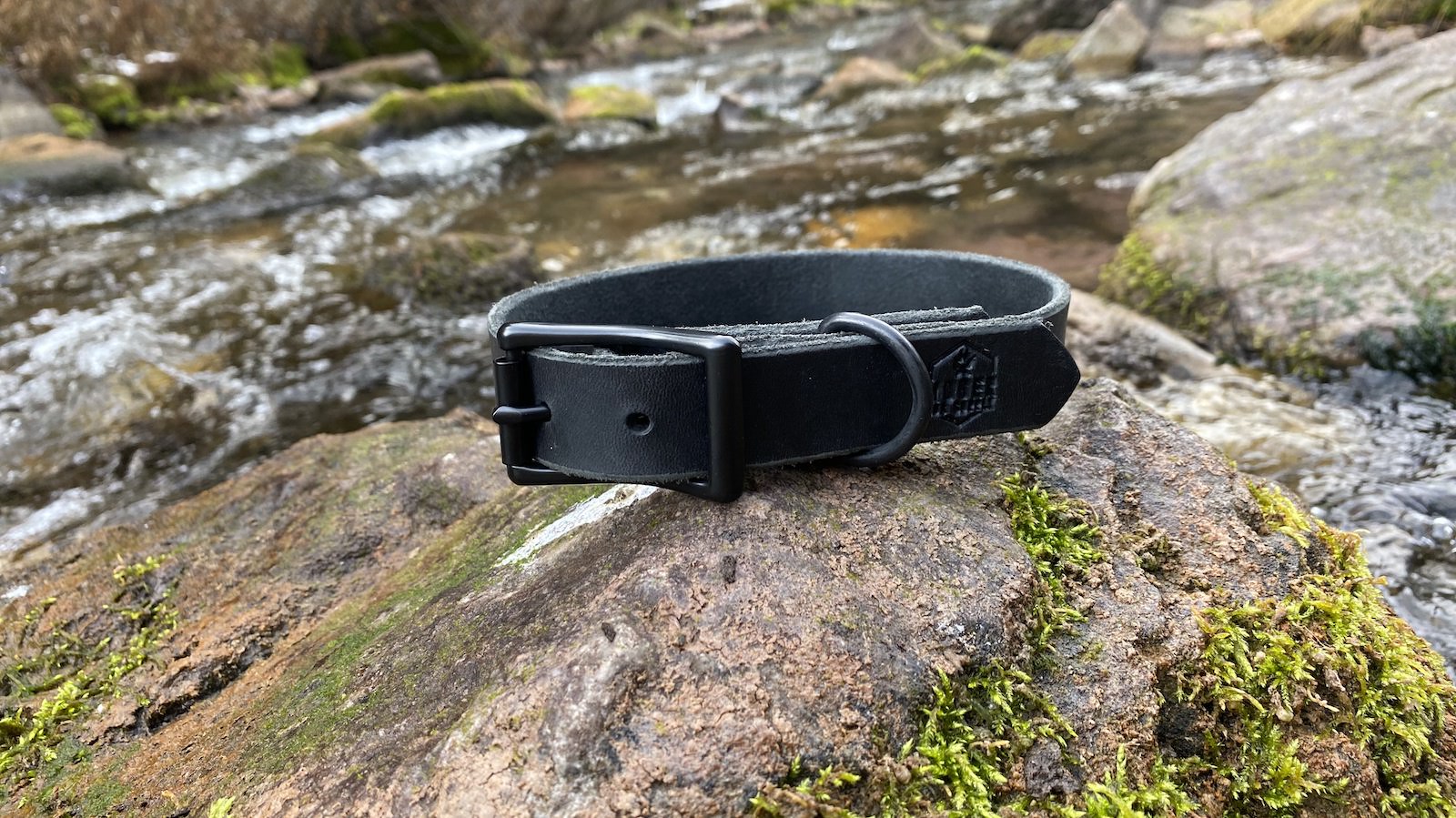 Moger Dog Supply 1 Inch Leather Collar has a water-resistant coating and patinas with age: Overview