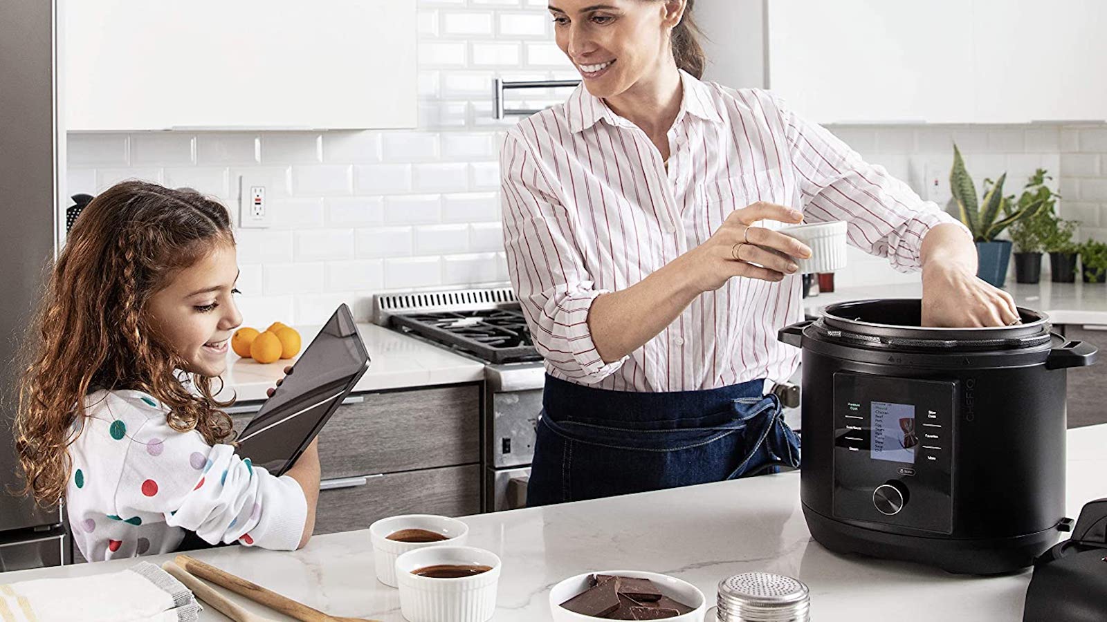 Its full-color LCD display offers capacitative touch control, and this smart pressure cooker connects to Wi-Fi.