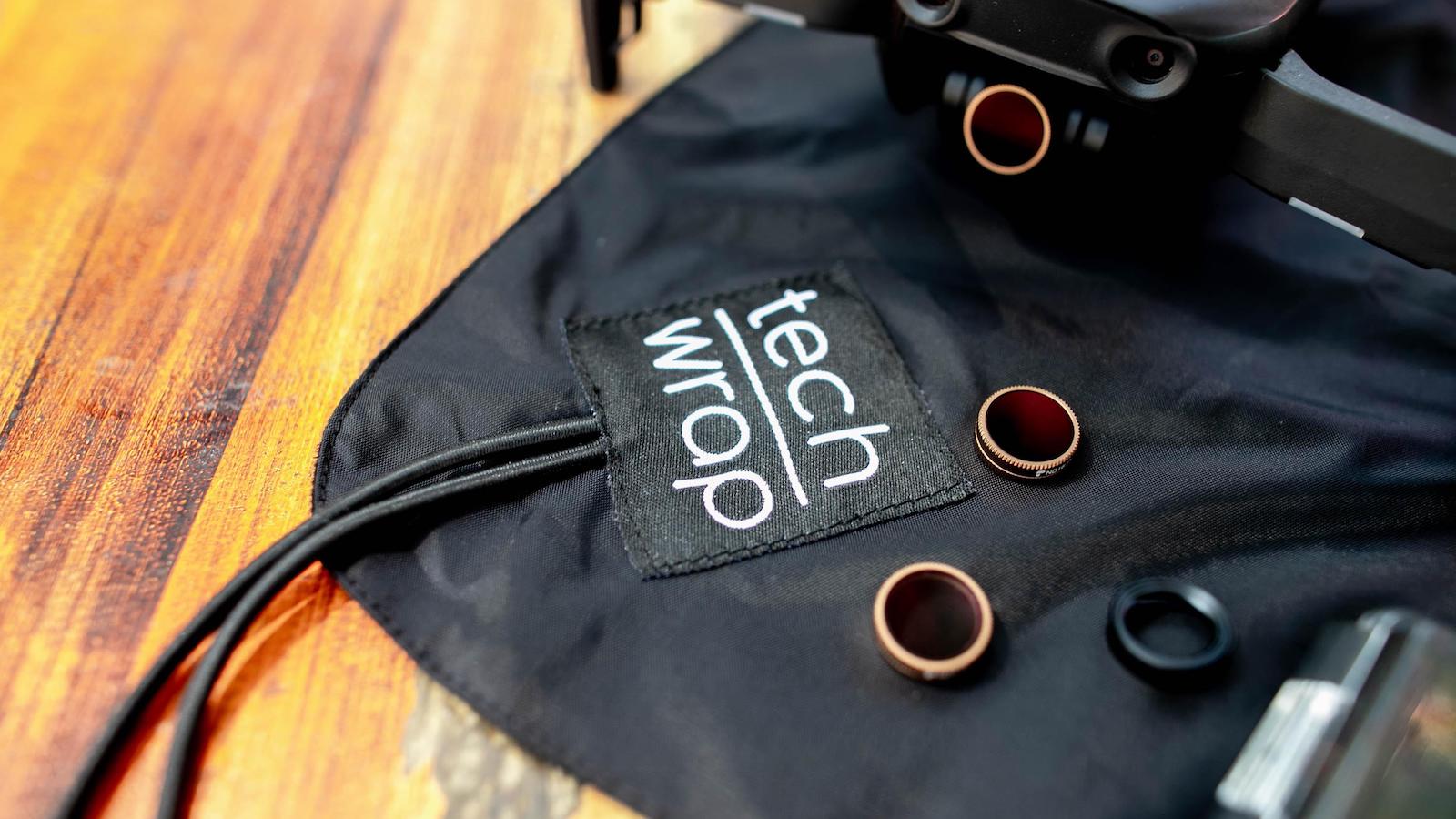 And the soft lining also doubles as a cleaning cloth, for even more usage. When you choose Tech Wrap, you’ll also have extra padding for your gear when you’re on the go. And it comes in two sizes.