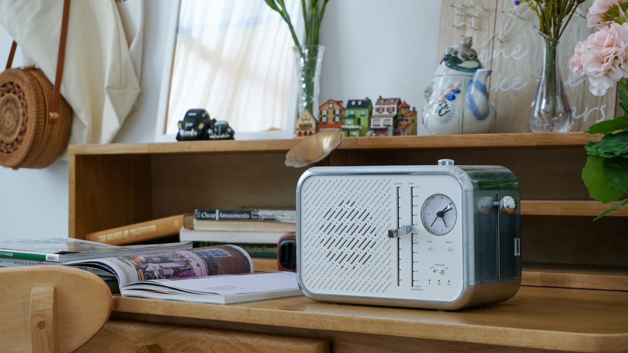 Furthermore, the Bluetooth speaker has eight watts of power, and the analog alarm clock gives it a retro look.