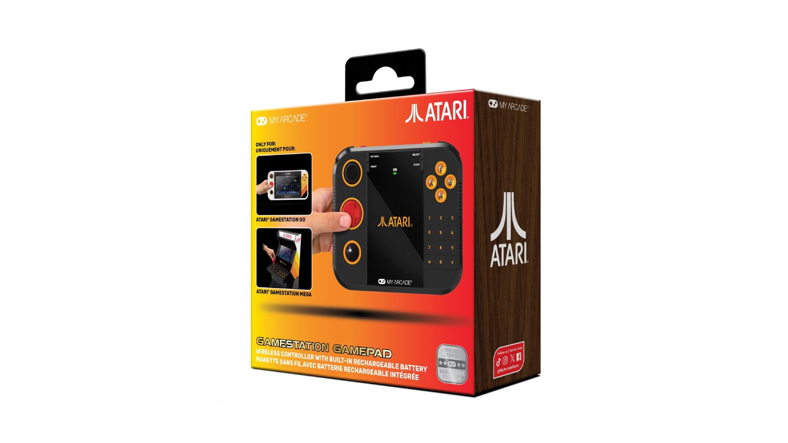 The My Arcade Gamestation Retro Gamepad is an official wireless controller for the Atari Gamestation Go and Gamestation Mega.