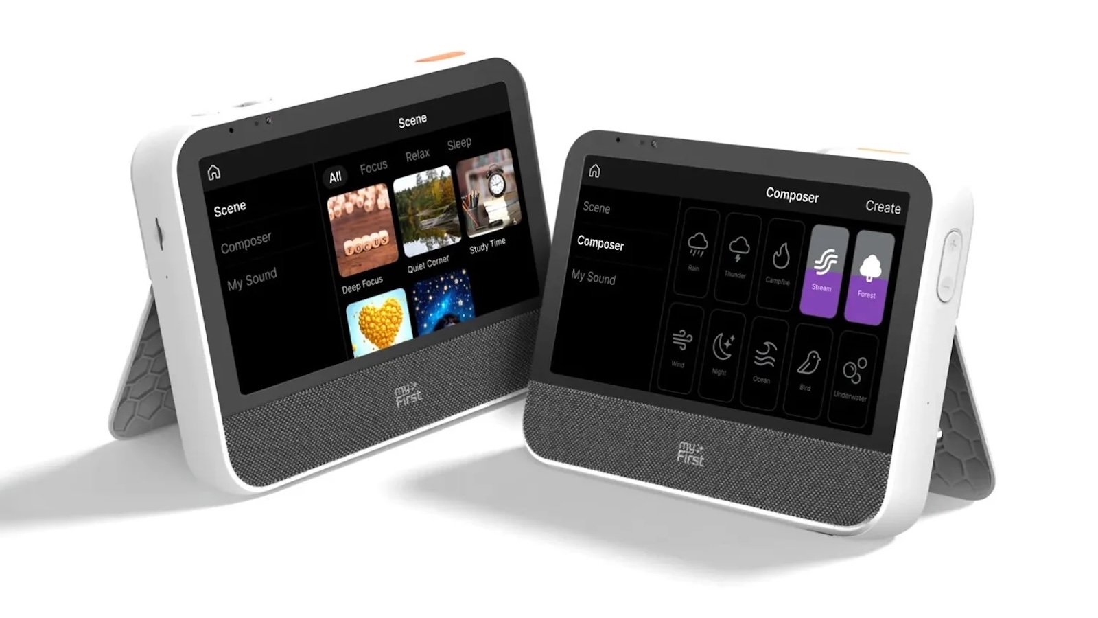 - Soundscape for focus or sleep: Blend built in ambient sounds like rain or ocean to create custom mixes that calm, relax, or help kids sleep.