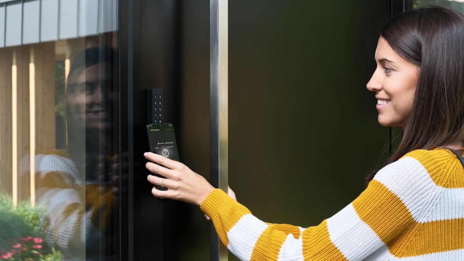 - Simple outdoor control point: A keypad outside the door makes entry faster, and NFC adds a more direct tap-based option for supported credentials.