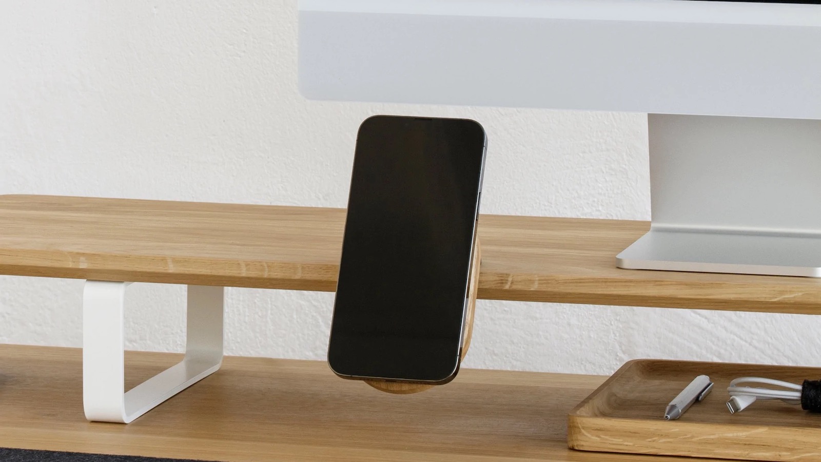 Oakywood MagSafe iPhone Desk Shelf Mount fixes to your desk & has a multifunctional handle: Overview