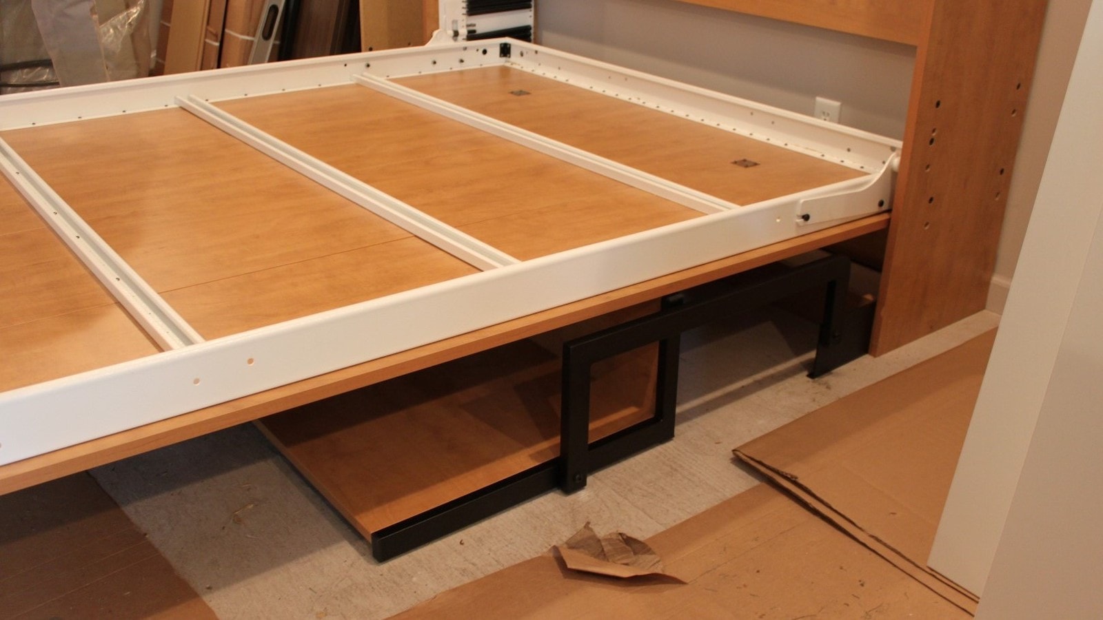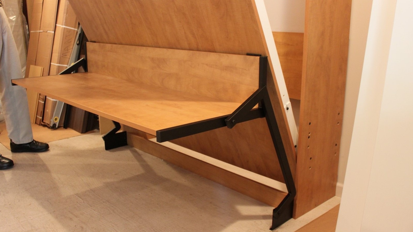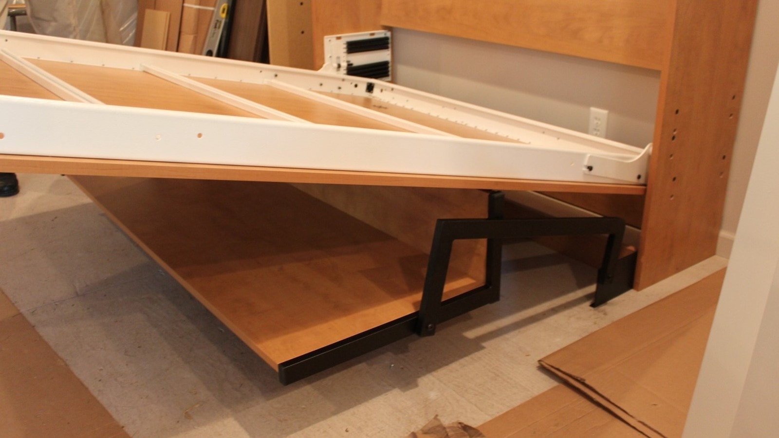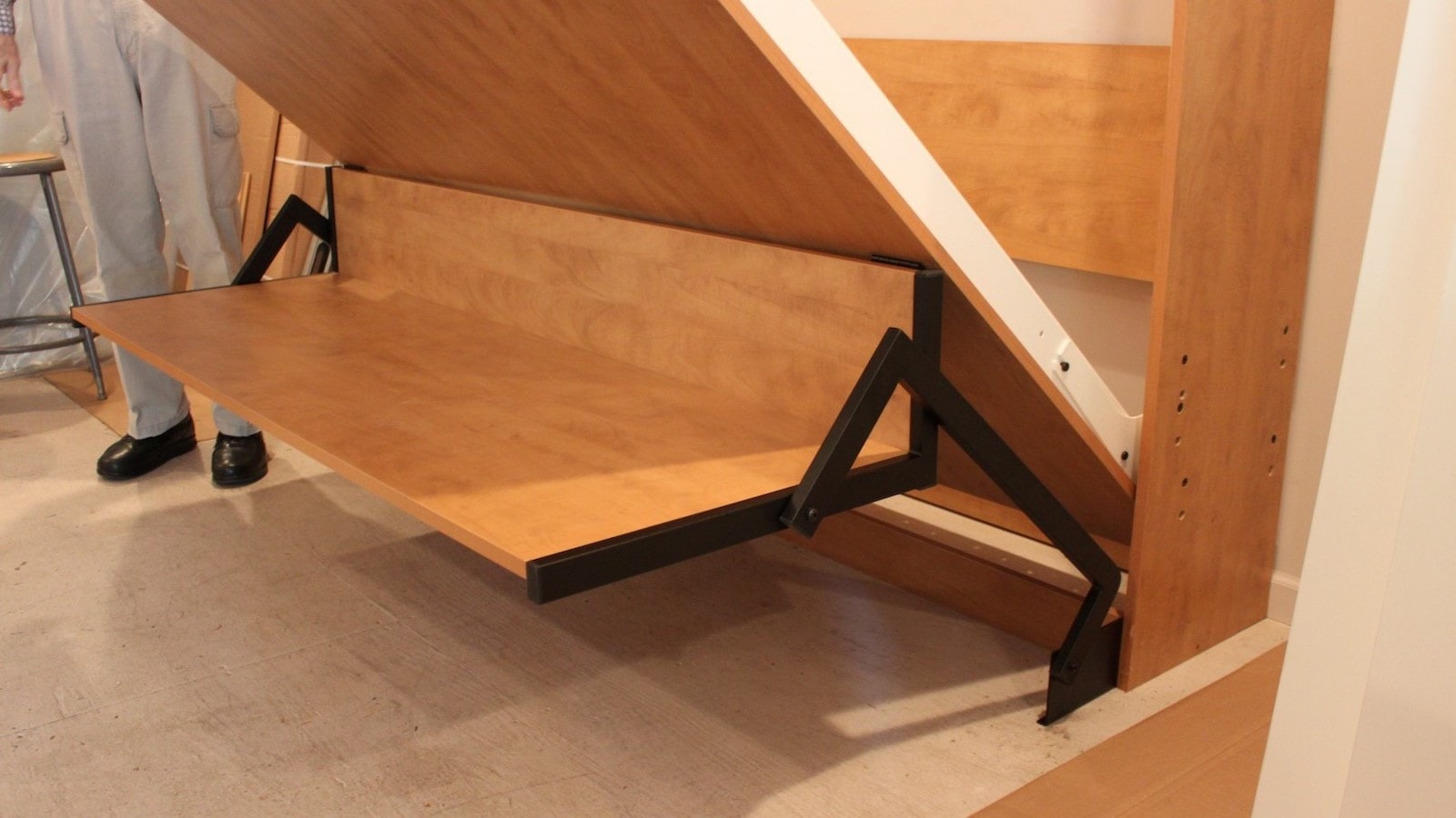 Oldham Wood Queen Desk Bed is made of real wood & steel with a guaranteed spring mechanism: Overview