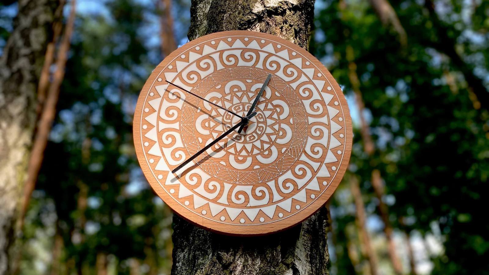 Olimpiclocks unique wall clocks are bohemian in style and made from natural, solid wood: Overview