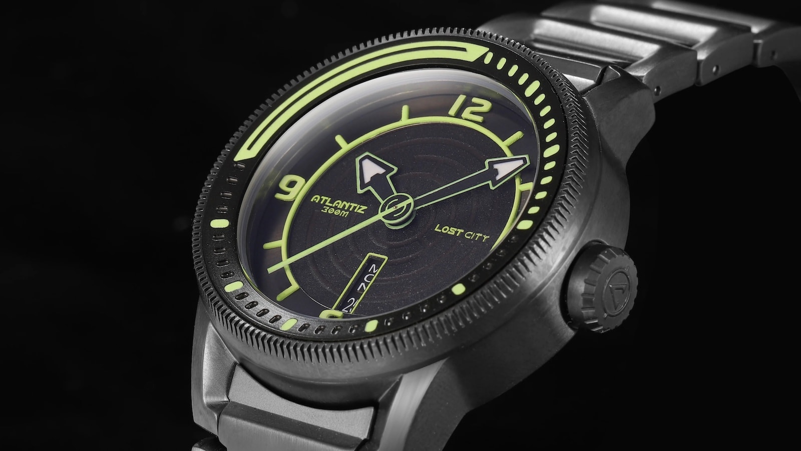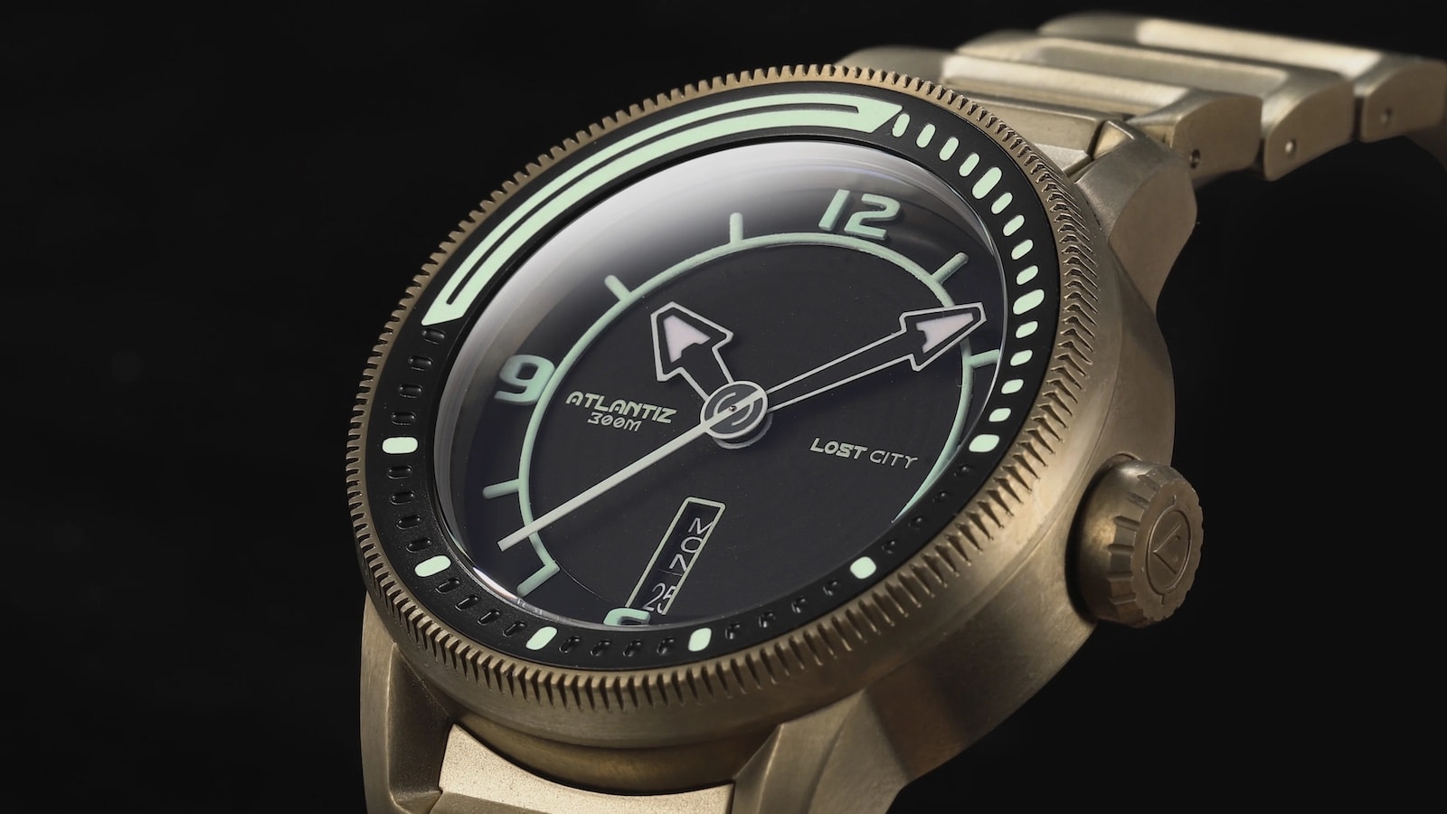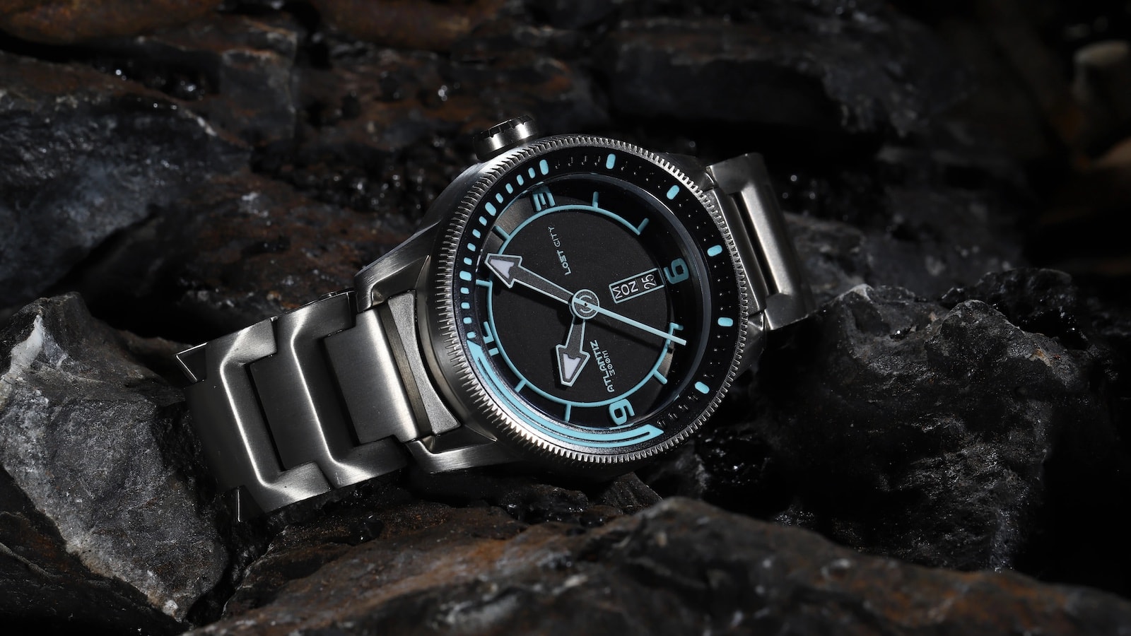 The titanium case, bezel, bracelet, and screw-down crown of Atlantiz ensure it has a lightweight, comfortable feel.