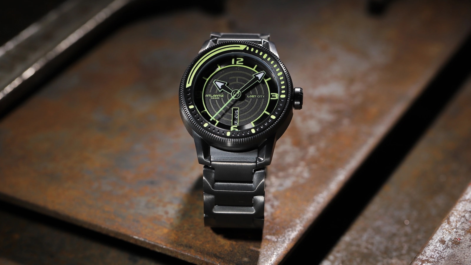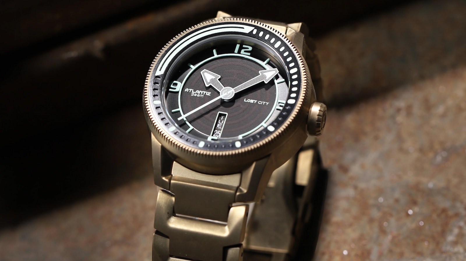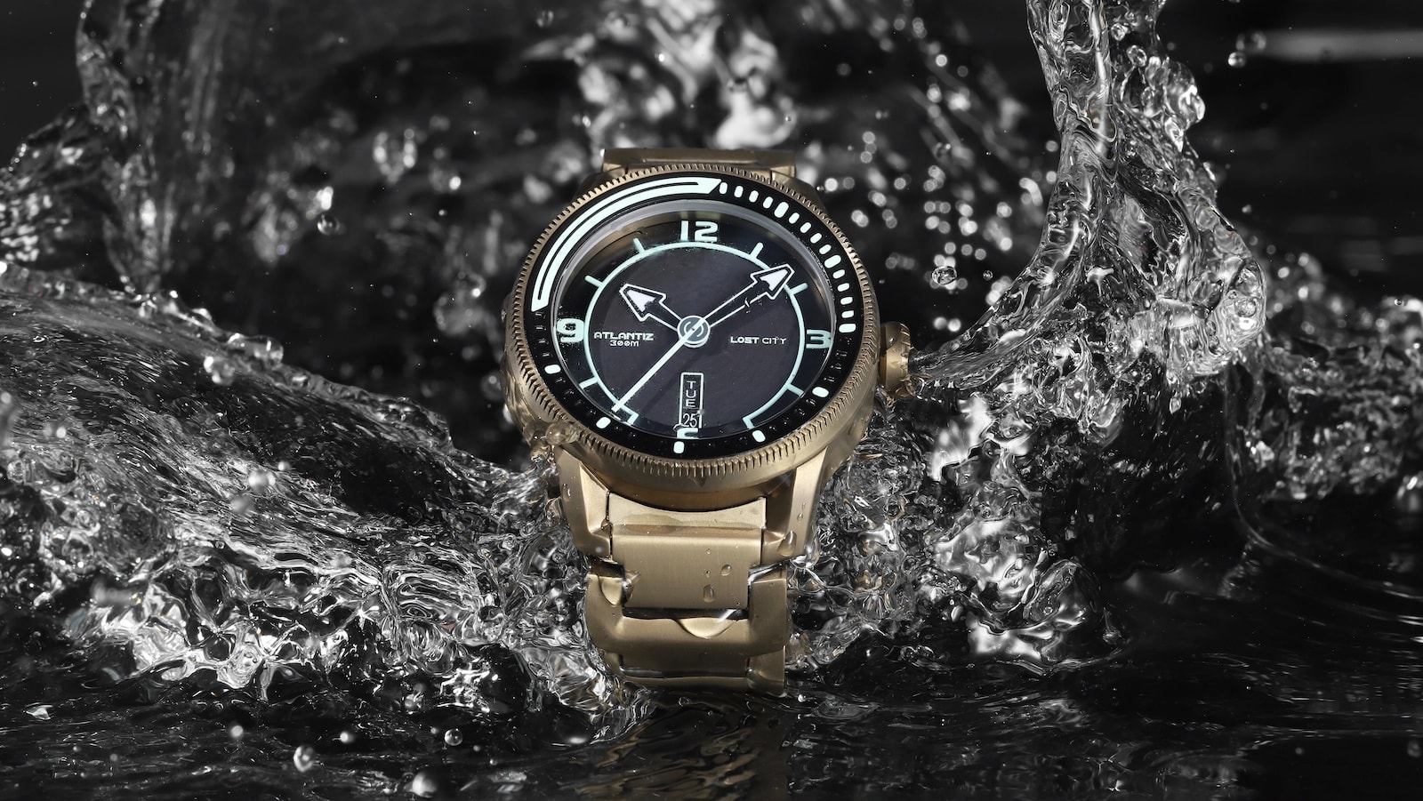 The titanium case, bezel, bracelet, and screw-down crown of Atlantiz ensure it has a lightweight, comfortable feel.