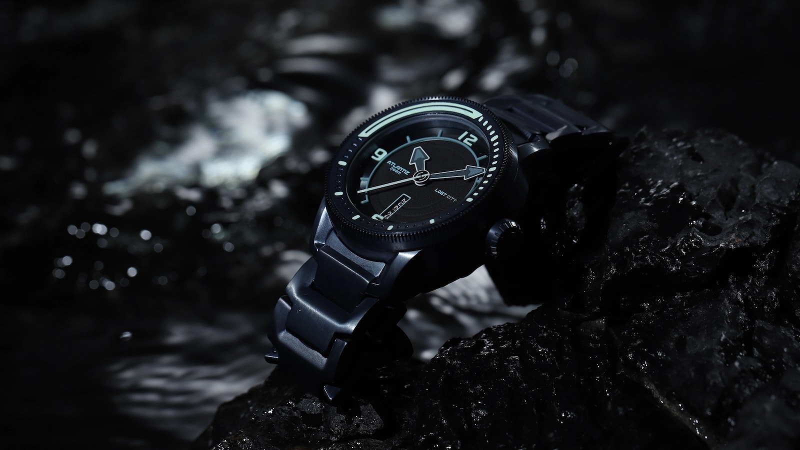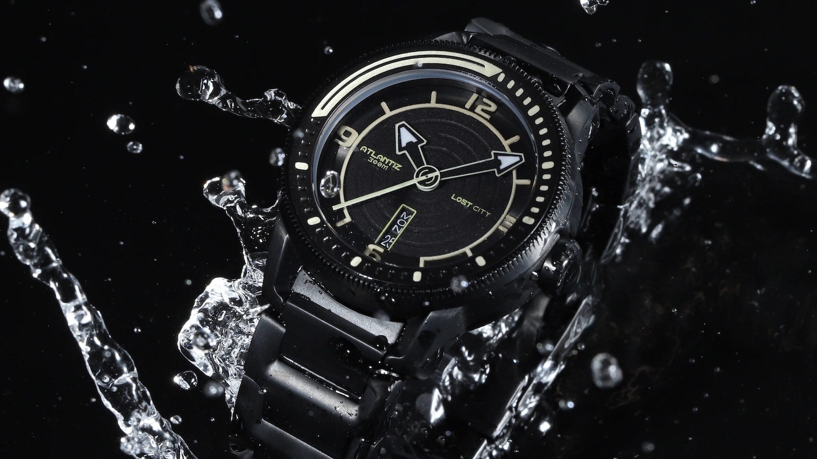So even sporty people will enjoy wearing it while working out. Echoing the sinking Atlantis, this titanium watch has a 300-meter water-resistant structure.