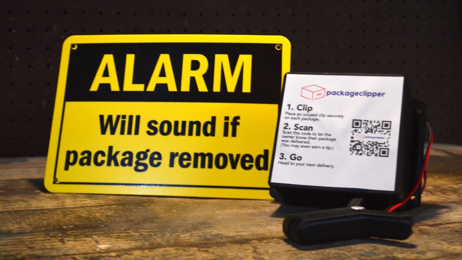 Avoid becoming a victim of package theft with the Package Clipper package protector & alarm system.