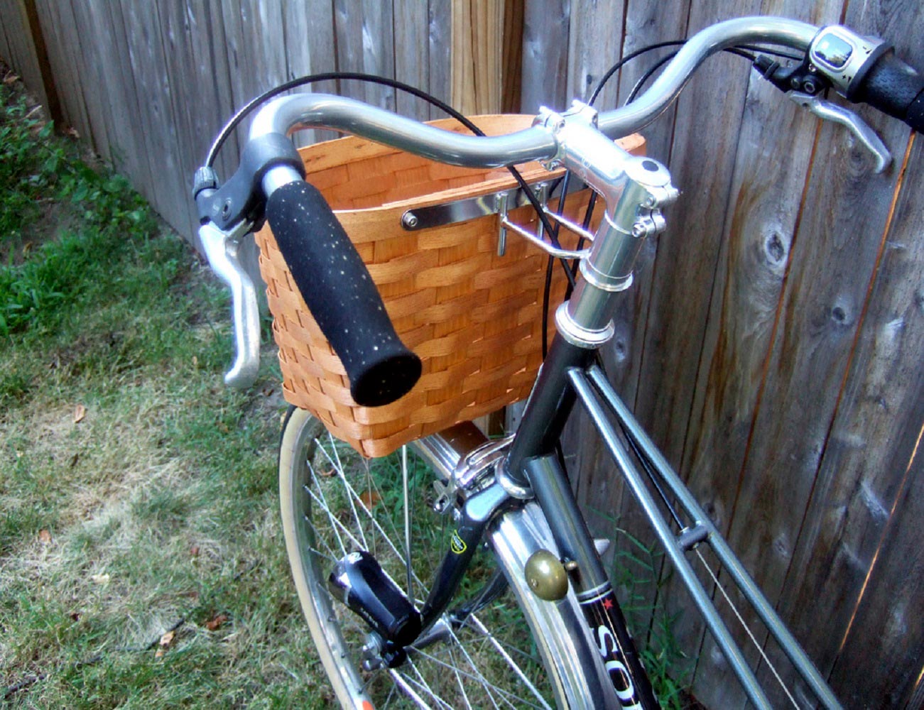 It is a hand woven basket that has been beautifully stained in honey color which makes it even more gorgeous in terms of being a bike accessory.