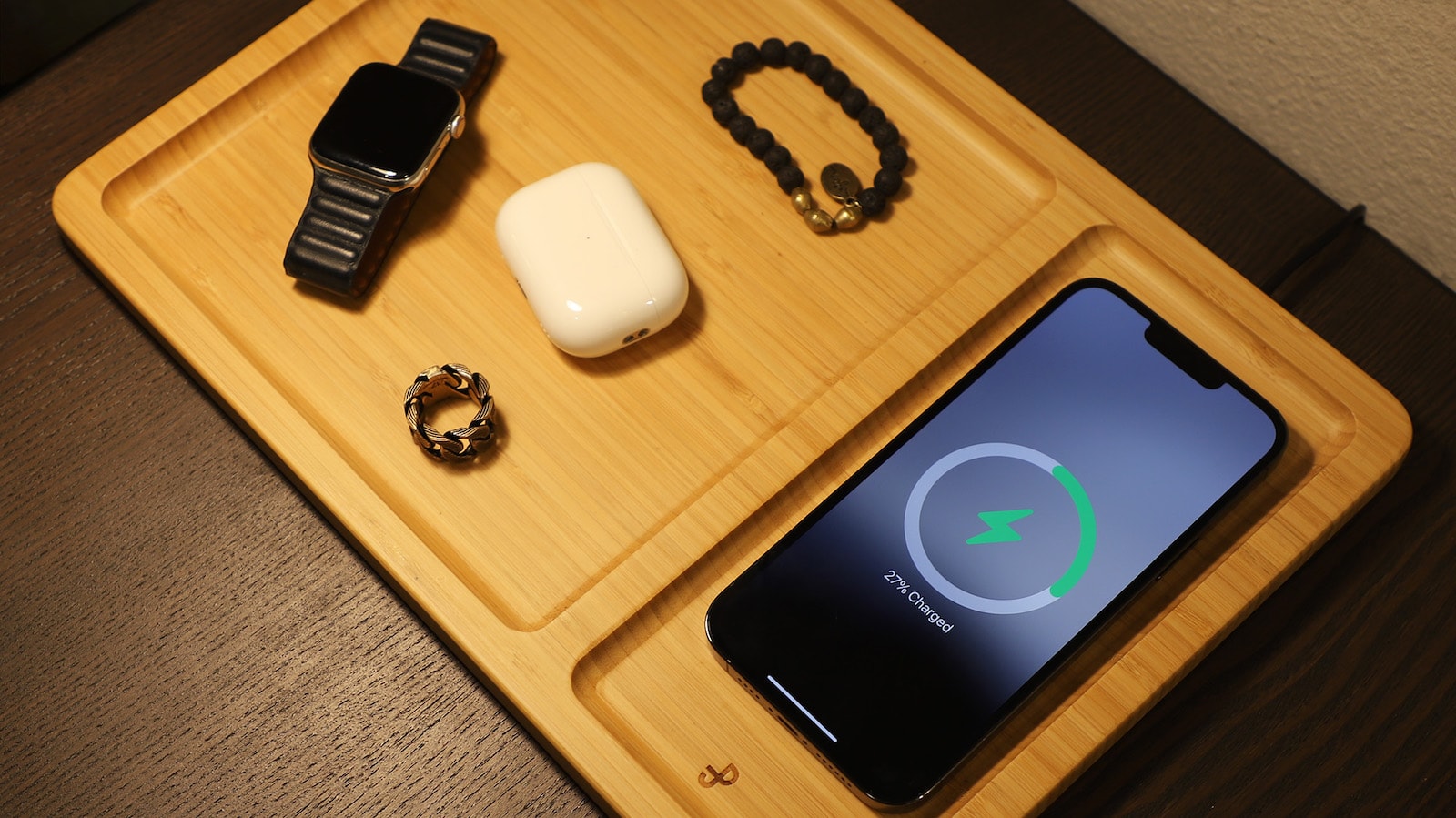 PJ Collection Bamboo Valet Tray with Wireless Charging organizes any space in your home: Overview