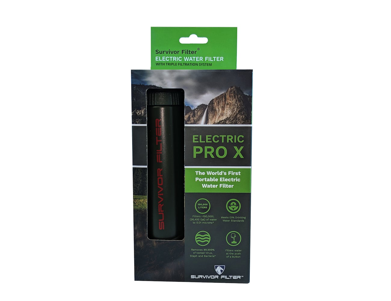 Quickly turn any water into drinking water with the Survivor Filter Pro X Portable Electric Water Filter.