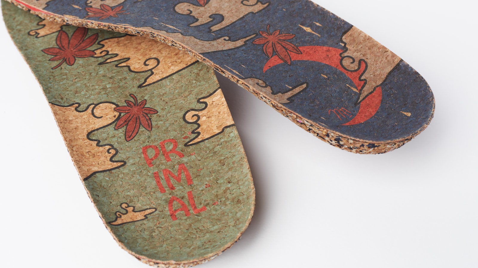 Then, the supportive bottom consists of upcycled Primal Soles, and the natural cork top layer provides comfort, breathability, and grip.
