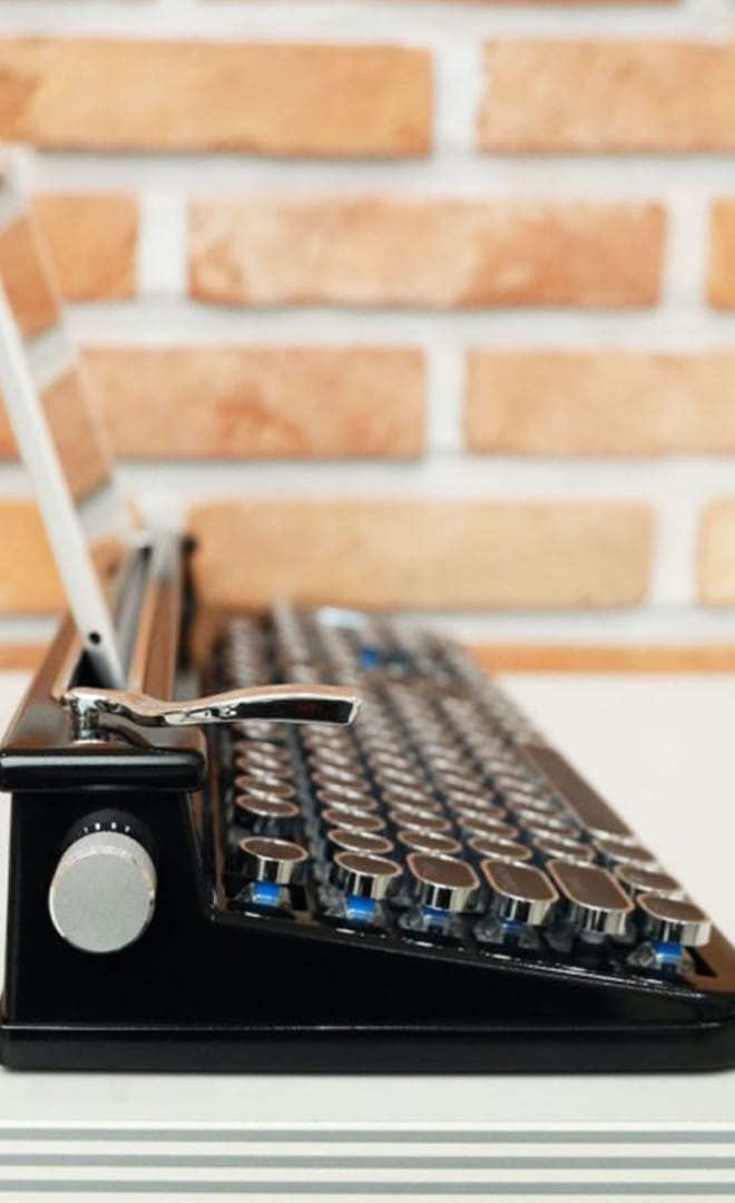 Combining up-to-date technology with a nostalgic design, the Retro Bluetooth Typewriter Keyboard even has LED backlights for a soft white glow.