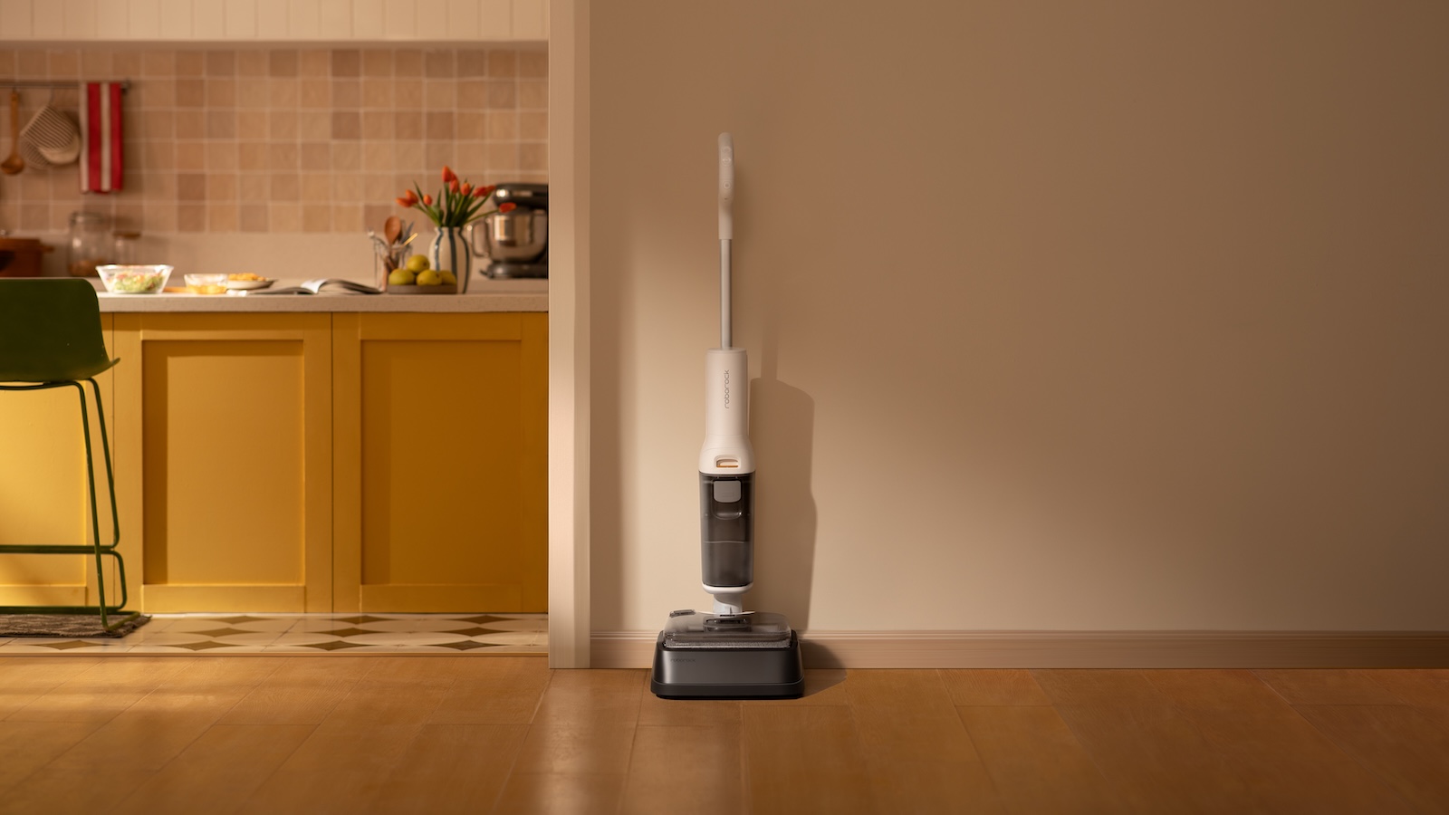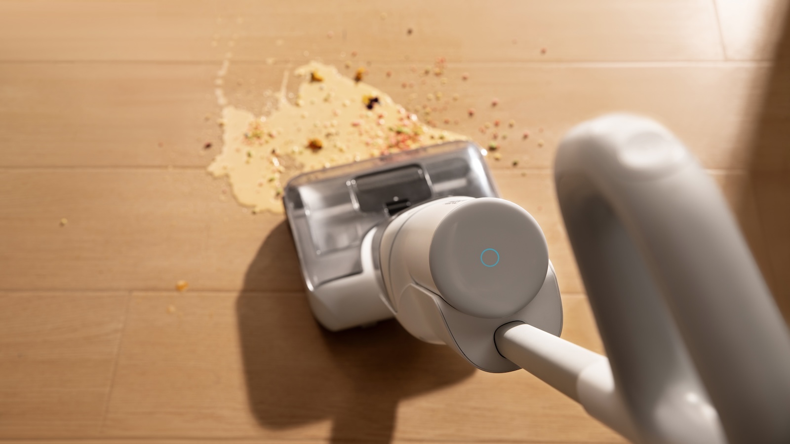 - Vacuum and mop in one pass: It picks up debris while washing the floor, which saves time in kitchens, bathrooms, and entryways.