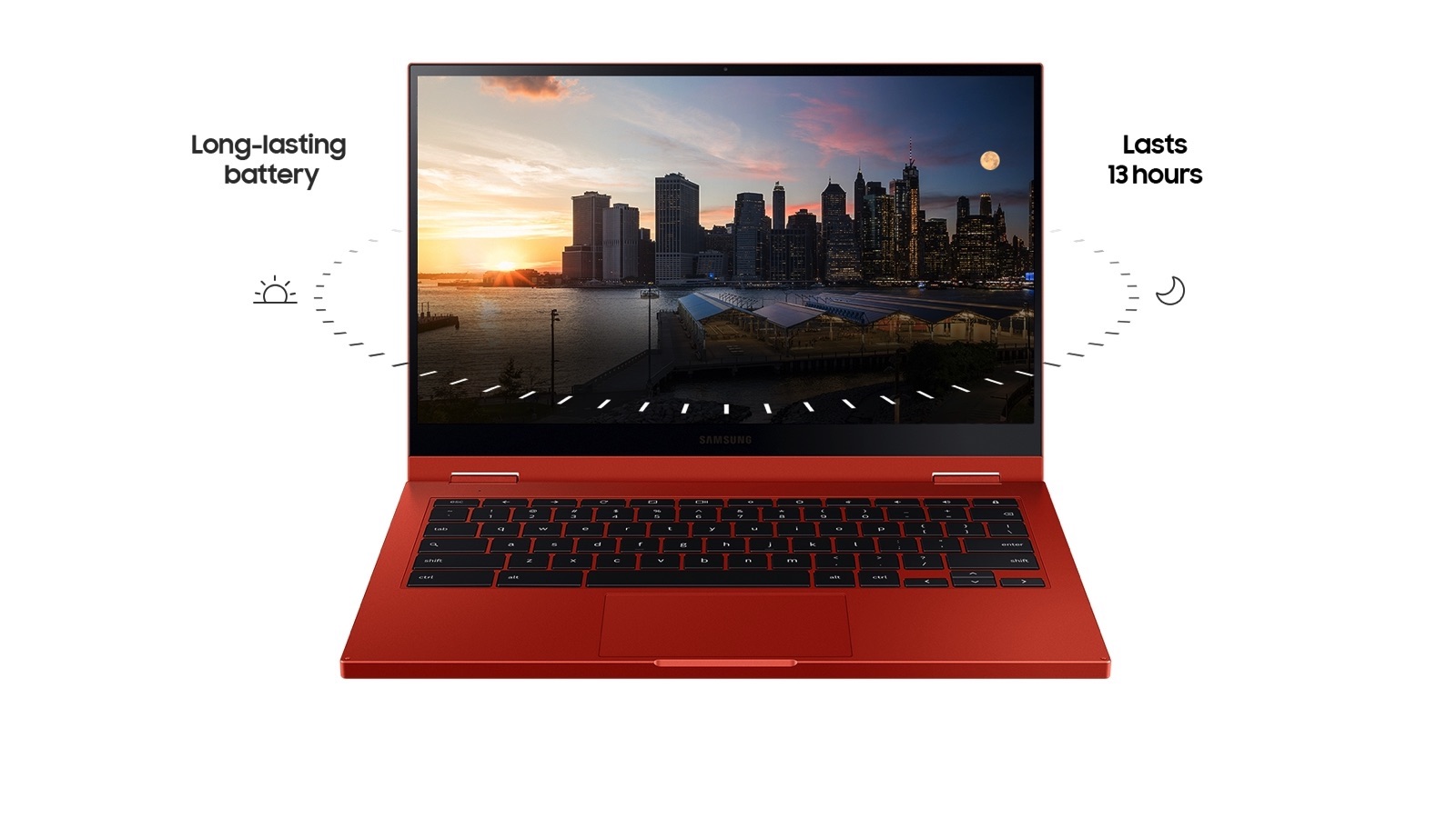 With an aspect ratio of 16:9 and a 1,920 x 1,080 display, the Samsung Galaxy Chromebook 2 brings videos and images to life, making details look crisp.
