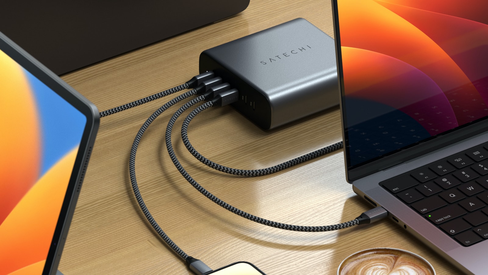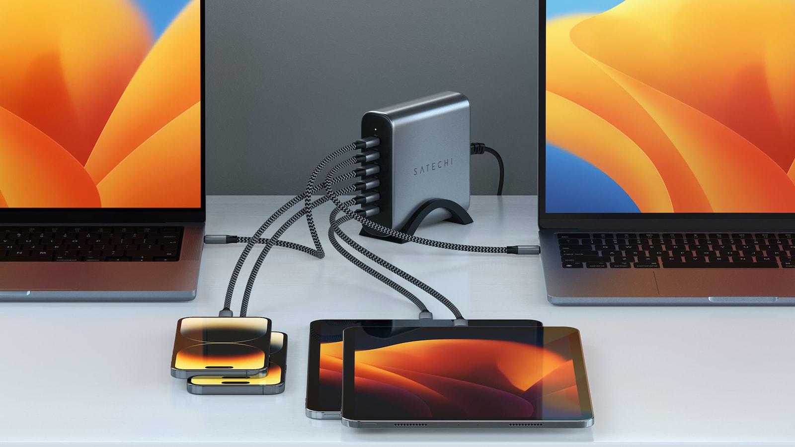 Keep all of your devices in the workspace charged up at once with the Satechi 200W 6-Port PD GaN Charger.