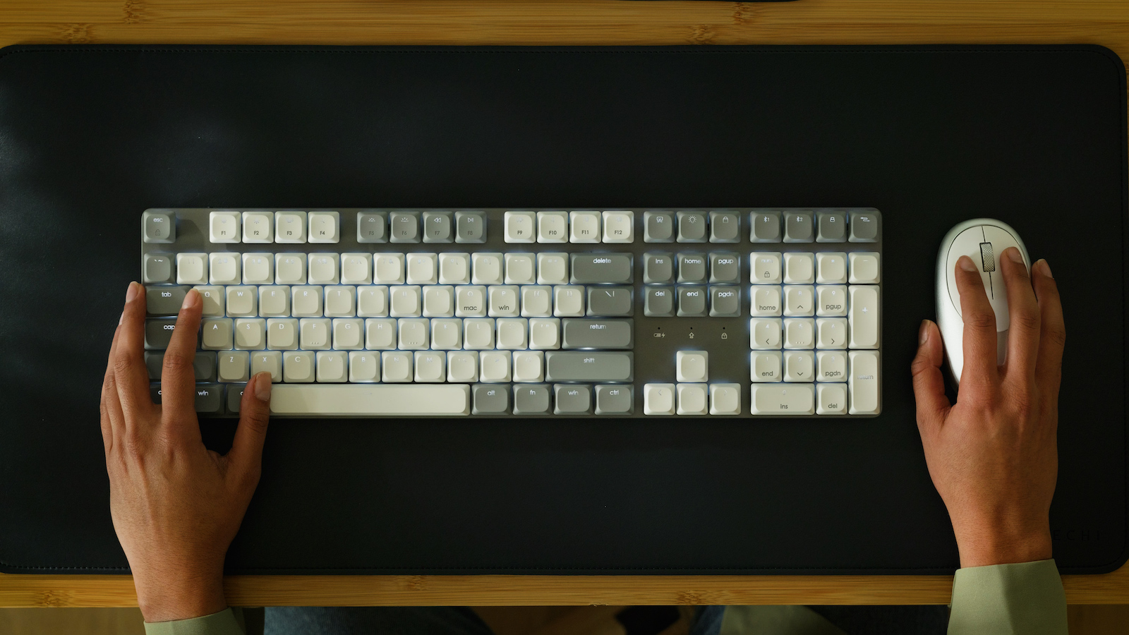 –Full-Size Layout: 108-key design with a numeric keypad, dedicated macOS and Windows keys, and low-profile brown switches for smooth typing.