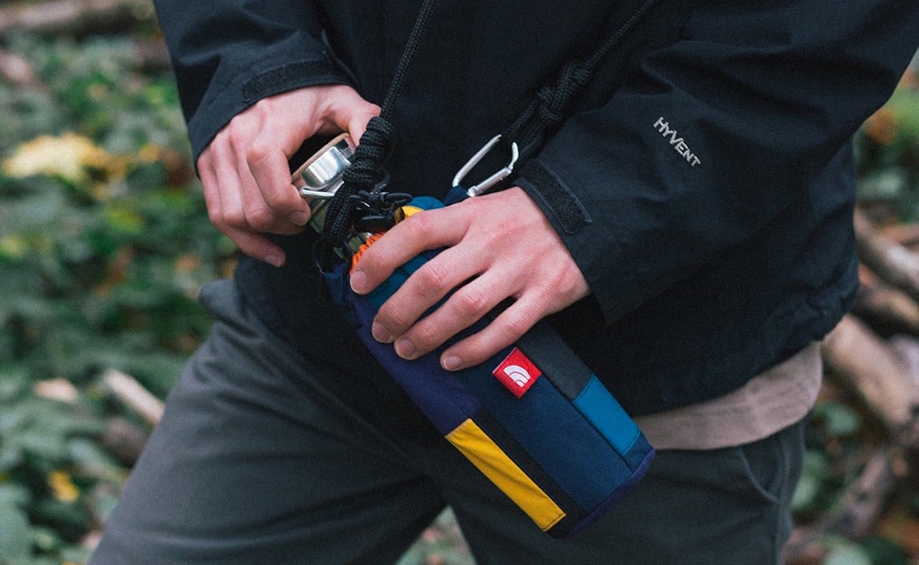 With a drawstring closure, each bag also includes two carabiners from which attach a polycord sling. This makes it easy to keep the bottle on your shoulder while you’re out and about. These bags suit any bottle that’s about seven centimeters in diameter