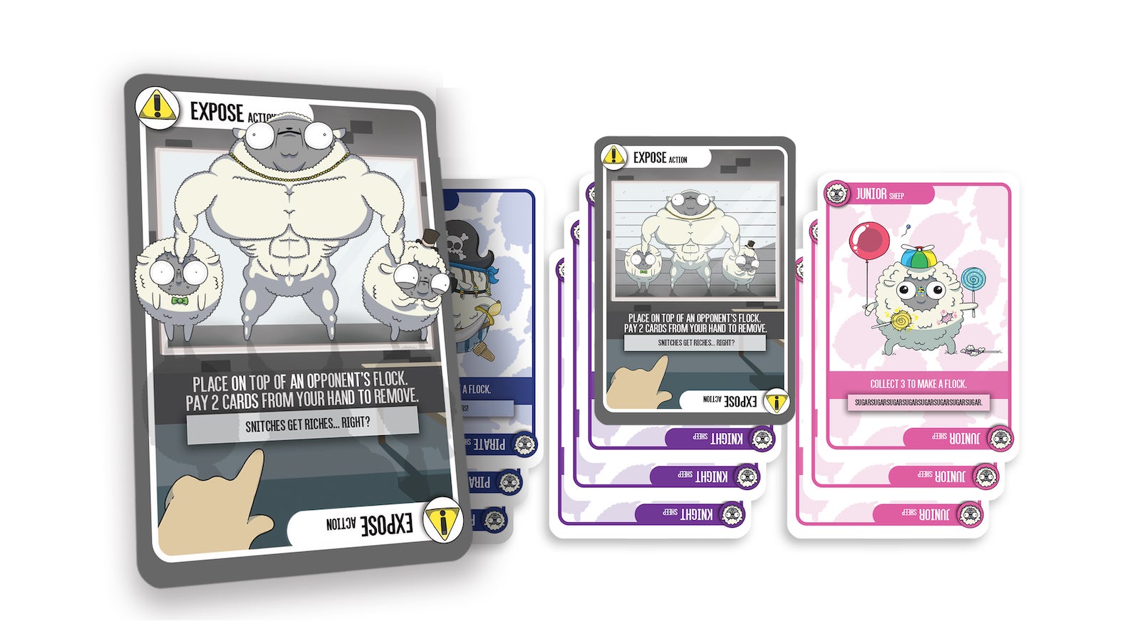 Collect flocks of sheep, keep them safe, and destroy your opponents in Sheep in Disguise, a vibrant and strategic party game! This action-packed card game is all about protecting super adorable, yet helpless, sheep from the outrageous and dangerous predators that want to devour them! Use action cards and wit to demolish anyone who wants to get in your way or harm your flock.