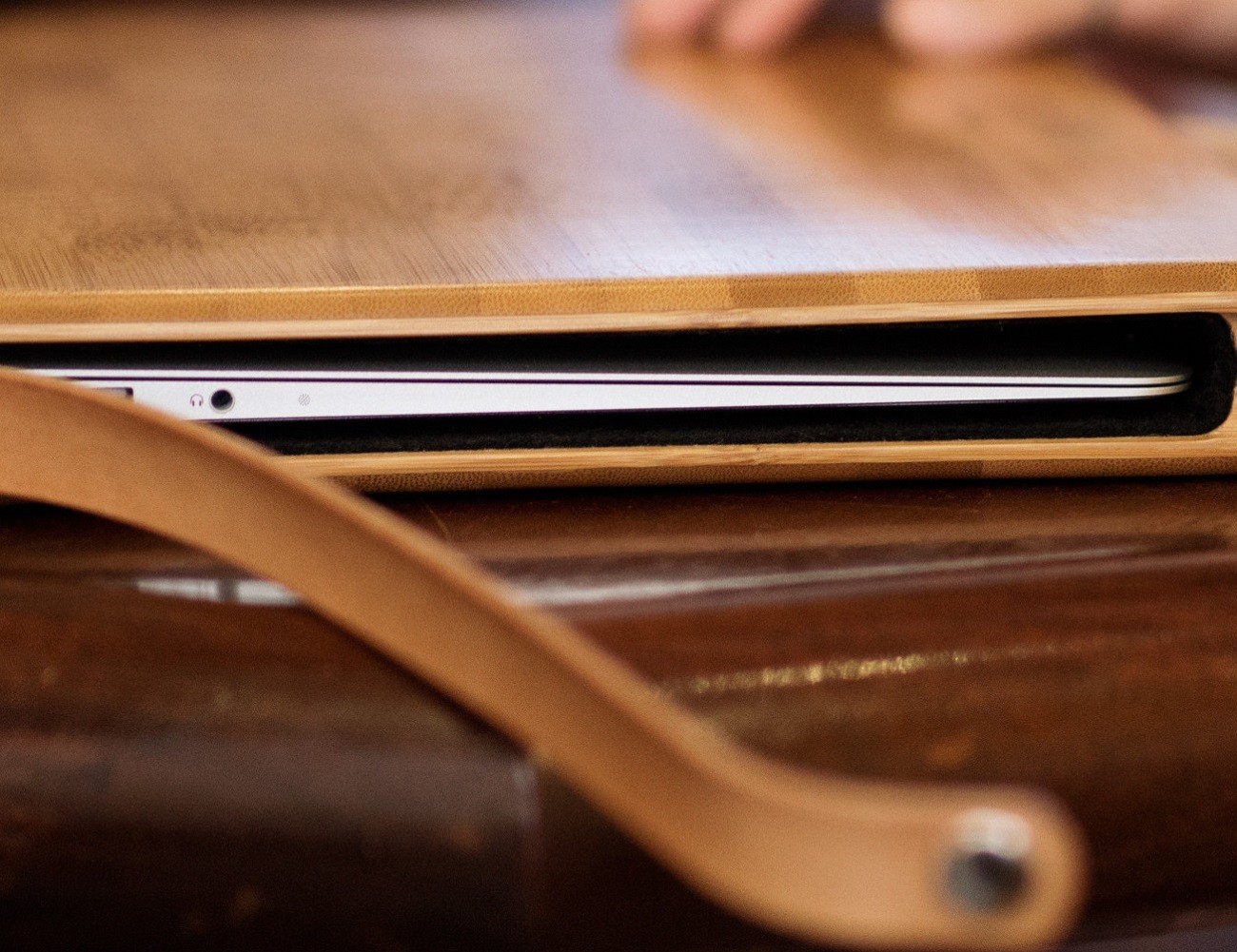 100% Solid Carmel Bamboo – CNC machined and hand assembled.Hand-Crafted Leather Strap – Hand burnished and oiled.Wool Felt Lined Interior – Protects your Macbook.Hand Rubbed Finish – Hard, glass-like finish