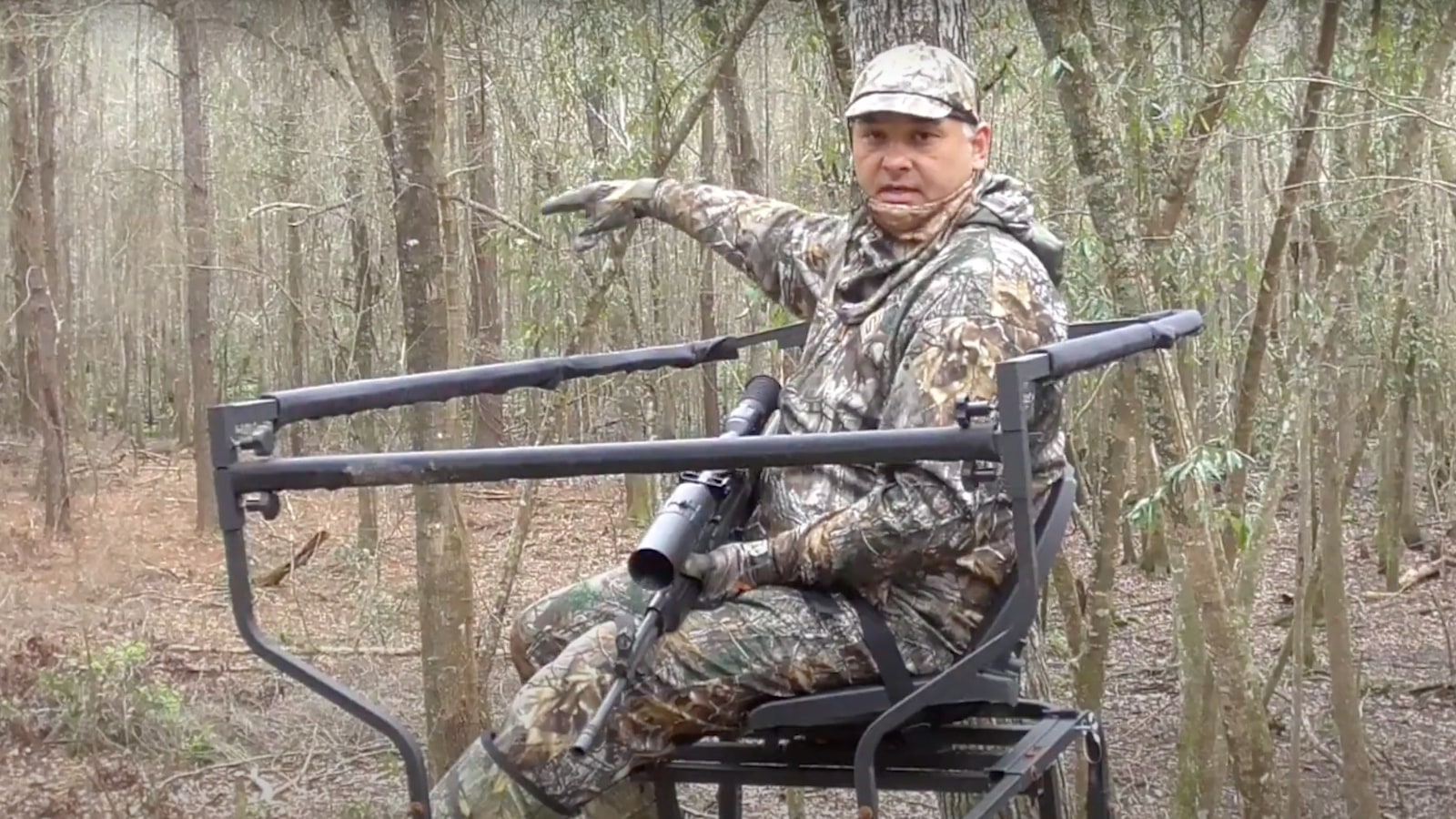 Skunk Ape Tree Stand allows hunters to sit safely in a padded and swiveling seat: Overview