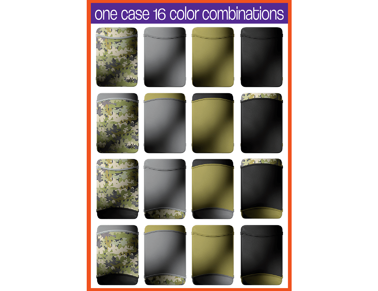 These layers along with the matching flaps are combined in a way that makes this case reversible sixteen different ways, giving you sixteen different looks in one case.