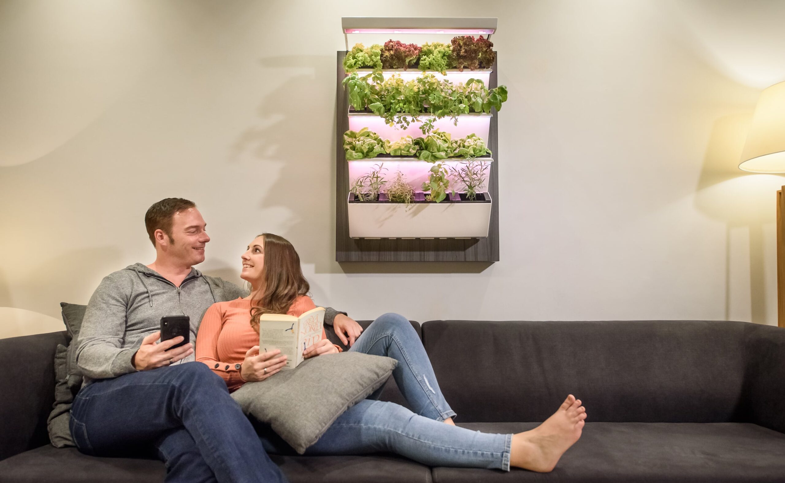 The modern and minimalist structure fits in with any interior space while the falling water creates a zen-like growing environment.