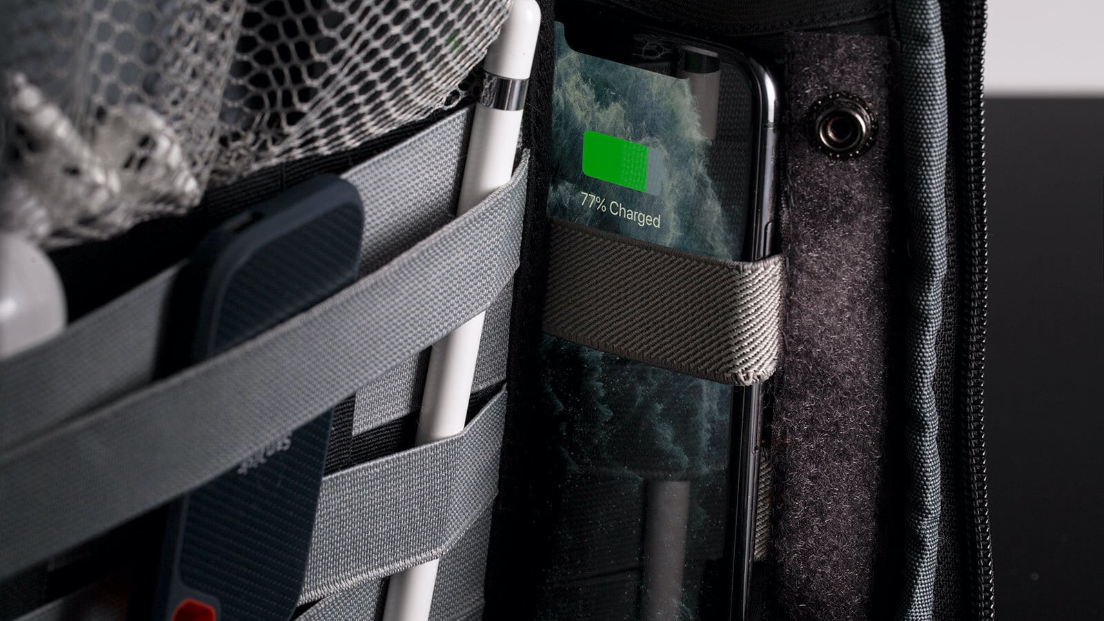 On the other side, there’s a magnetically closing wipe pocket for quick access to antibacterial wipes.