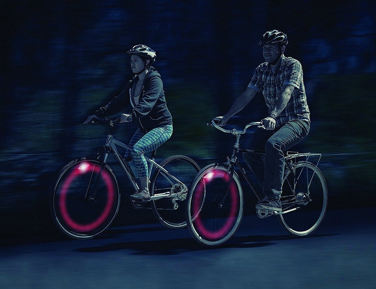 Fit it simply and easily to the spokes of your wheel. Once you’re pedalling at a steady speed it will blur into a seemingly solid ring of light..