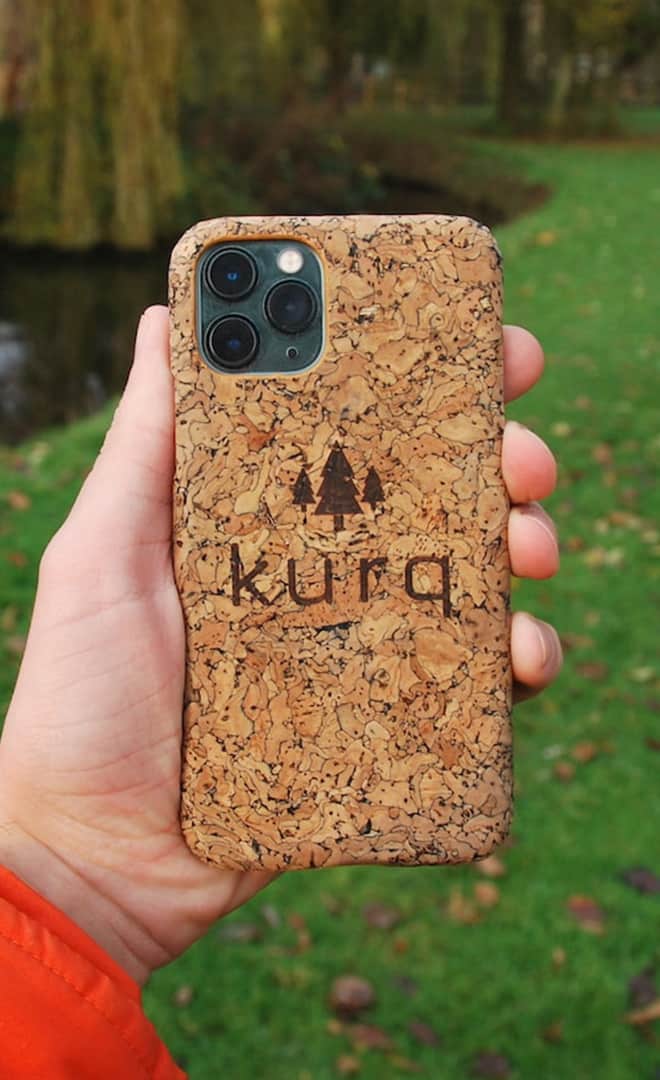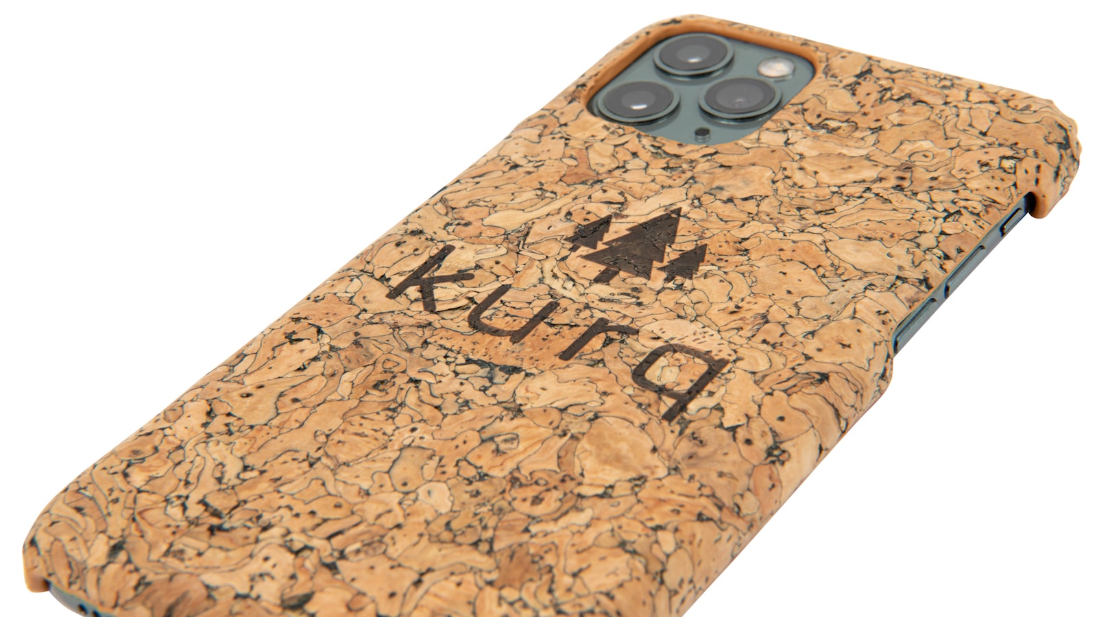 Made of cork and recycled plastic, the KURQ sustainable phone case is an alternative to plastic phone cases.