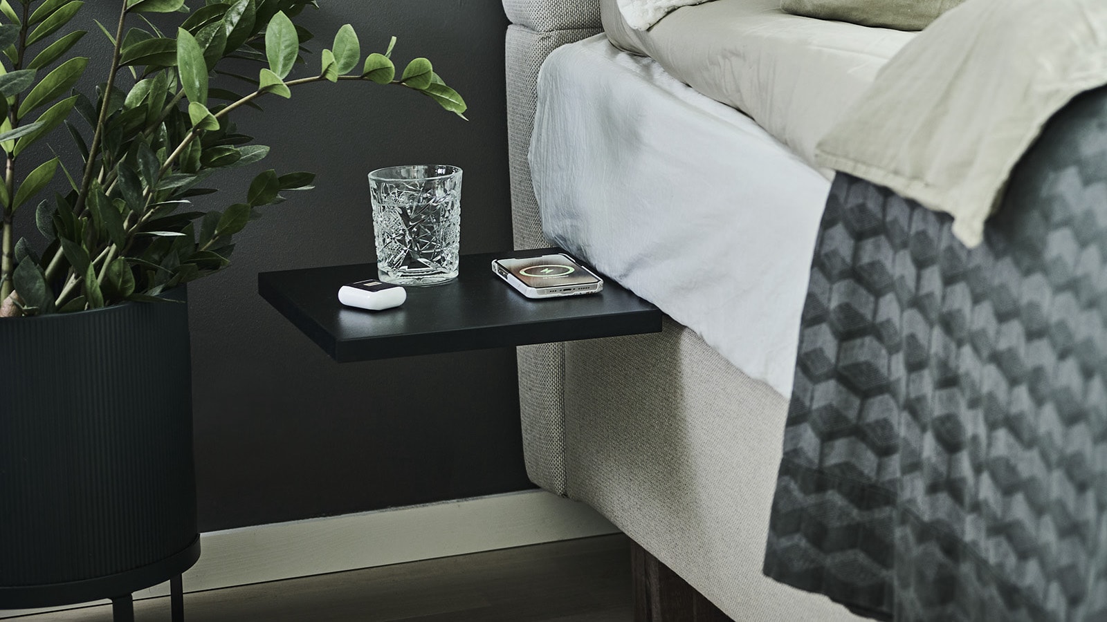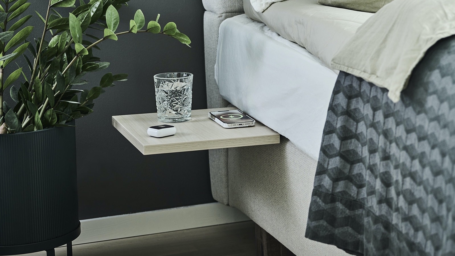 Keep your nightstand charger free and maintain a minimalist aesthetic with the Sveeve multifunctional bedside & sofa table.