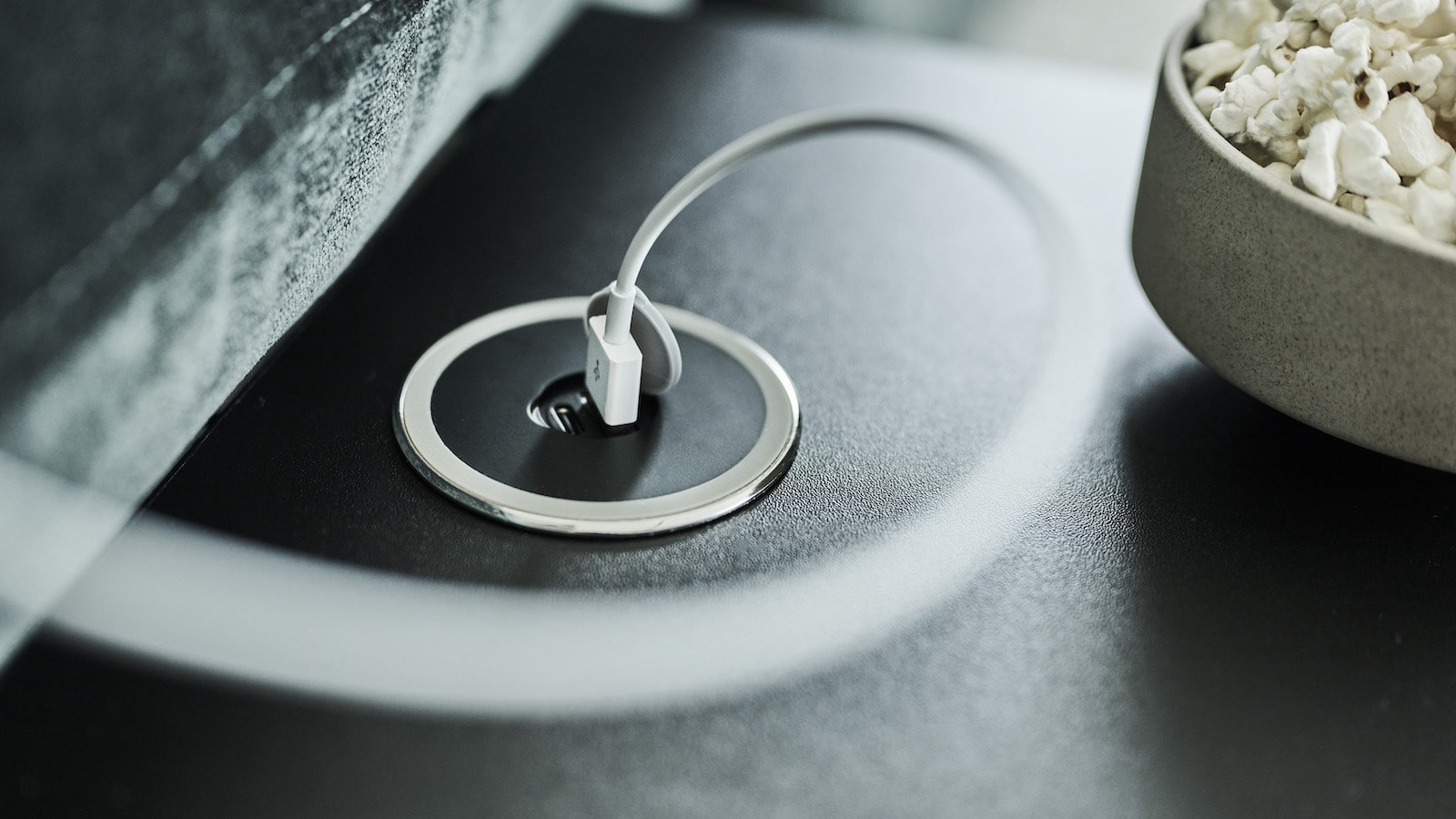 Additionally, you can conveniently use either of the USB ports to charge your devices from this table.