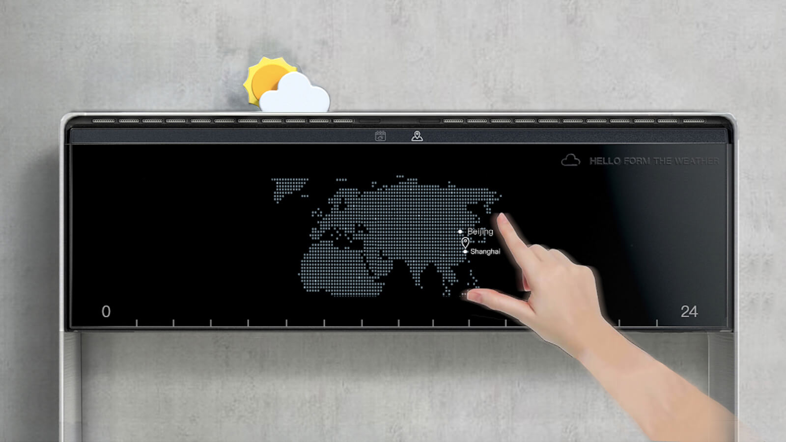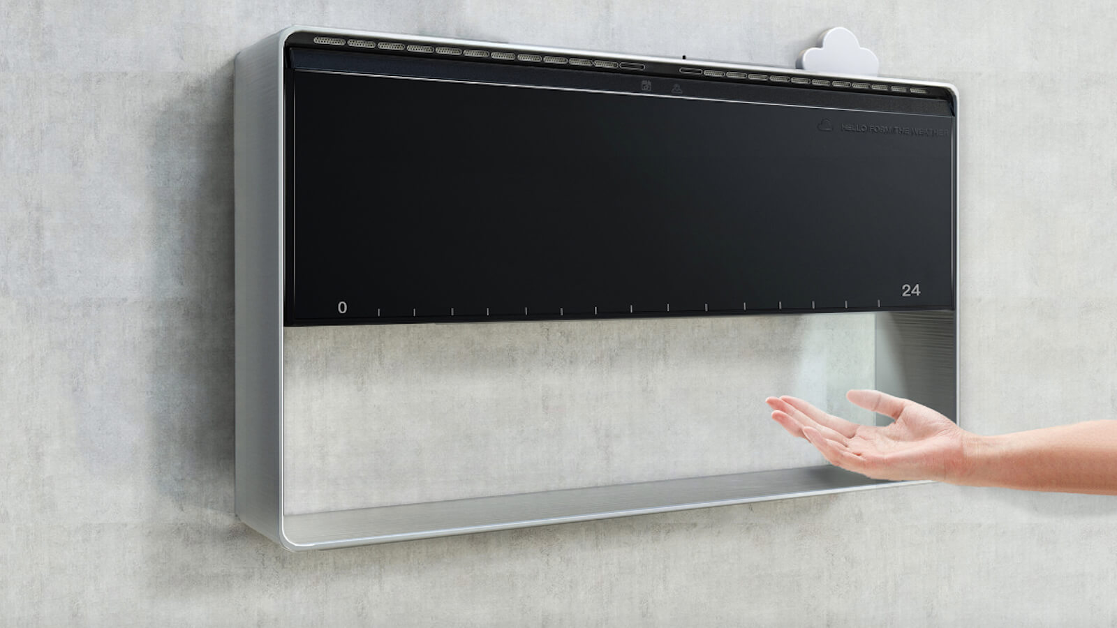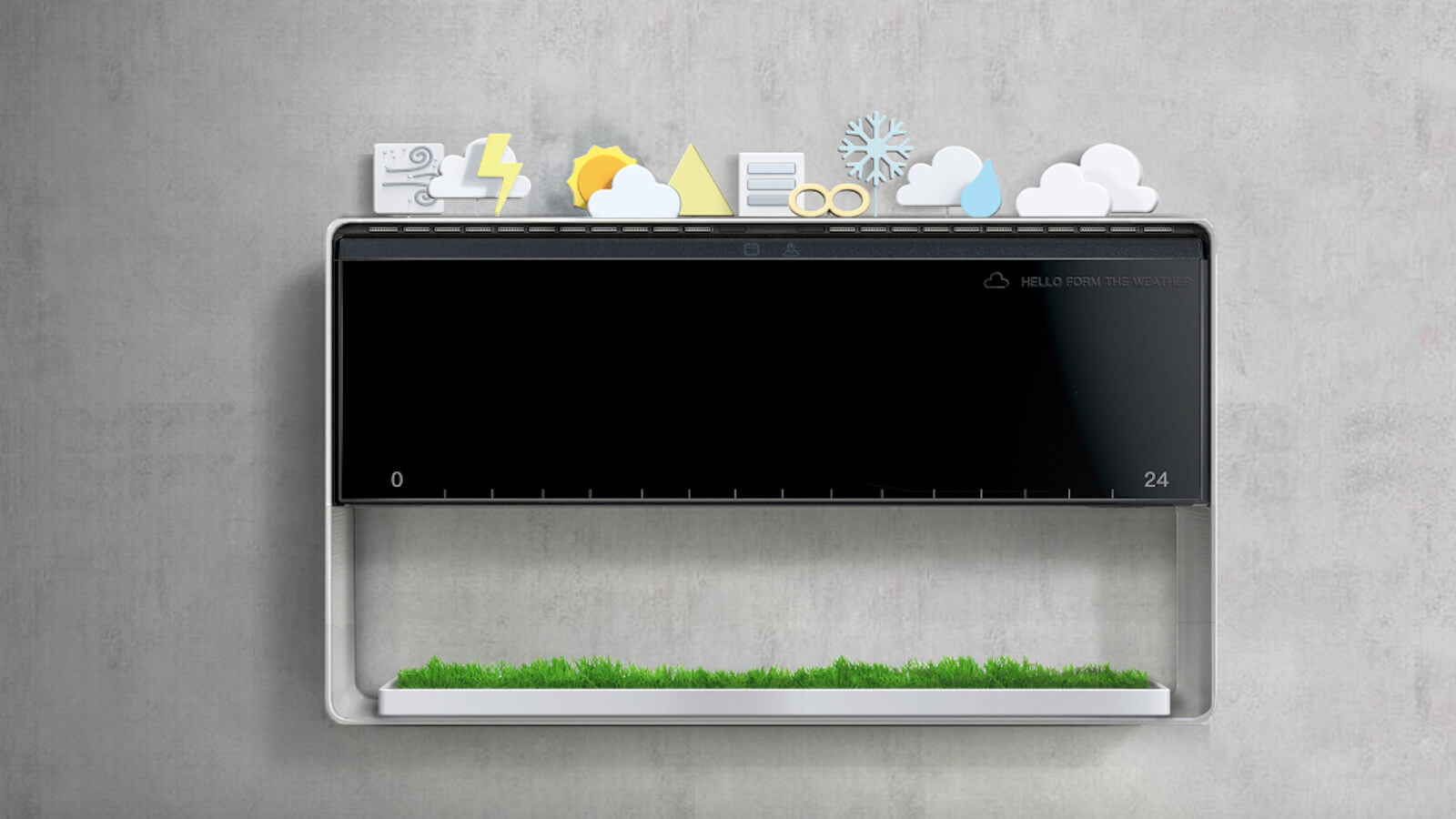 This concept product has a top section with visual indicators of the weather including the sun, clouds, rain, and snow. At the bottom, you can actually feel a breeze, ice, rain, and the exact outdoor temperature. Therefore, you know exactly what to wear without stepping outside.