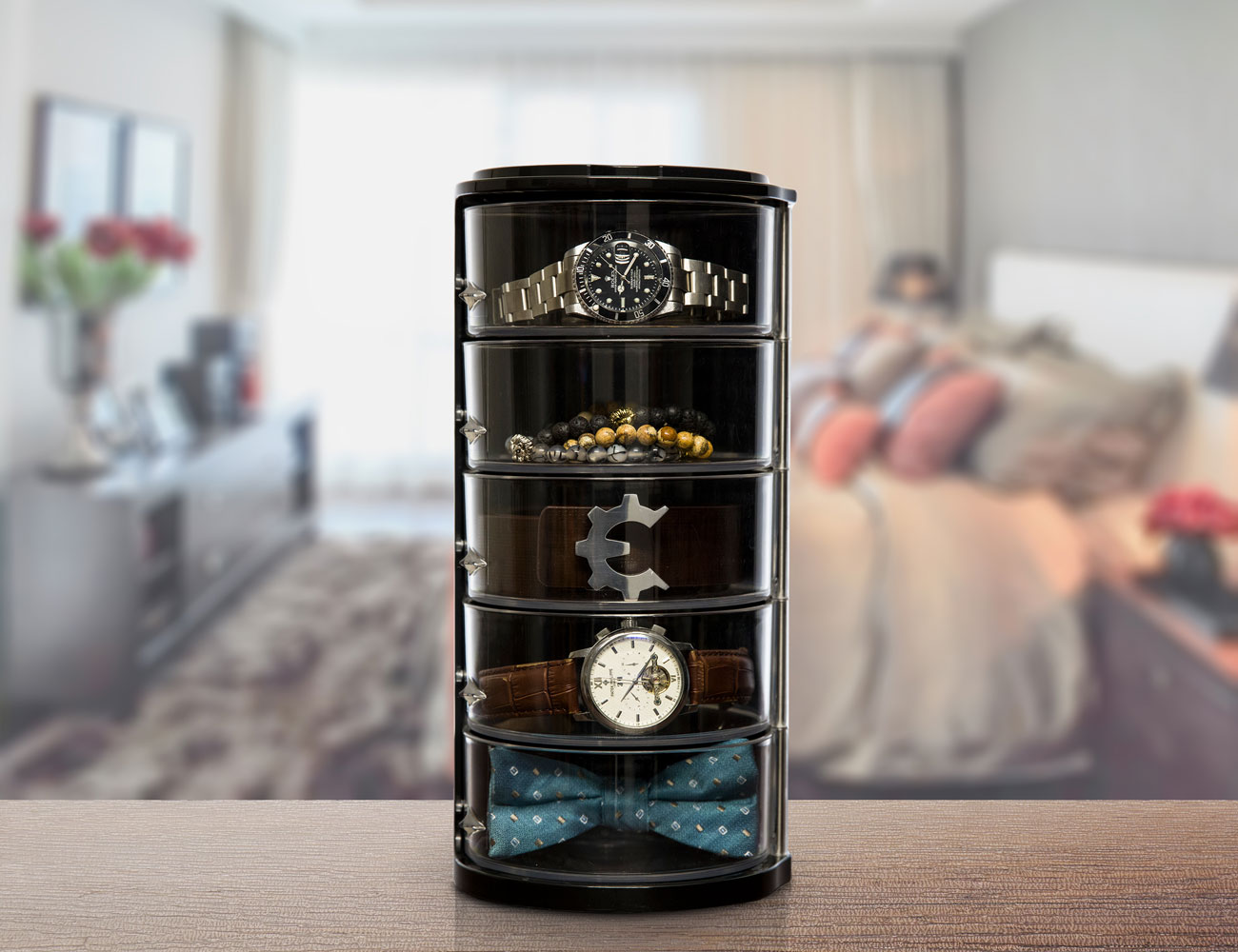 Tidy up your space instantly with the ELYPRO Tired Belt Organizer. This easy to use system gives you five slots to perfectly organize your belts. Coming in a cylinder shape, the Belt Organizer allows you to coil your belts for storage. With this, your belts won’t be tangled or folded and are always ready to wear.