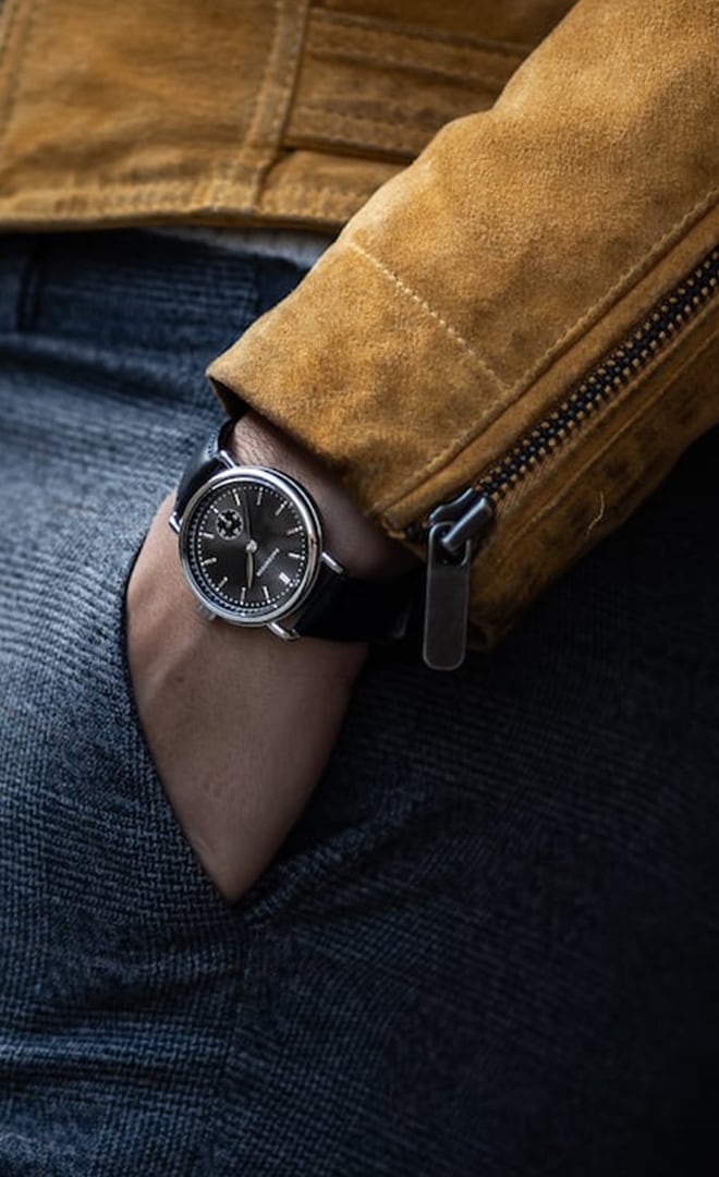 ” The third piece in this watch collection, the Earhart, has a thinner 34-millimeter case for a slimmer profile.